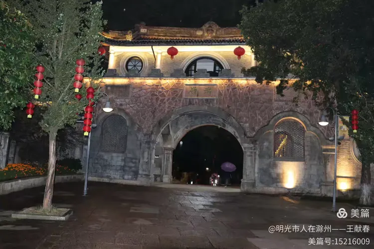 又见一座石拱门,圆窗高悬,像一只凝望夜空的眼睛。红灯笼挂在门楣,树影斑驳地洒在石阶上,随风轻轻晃动。我站在门前,雨水顺着伞沿滴落,而门内的世界,仿佛静止在某个遥远的夜晚,未曾被惊扰。