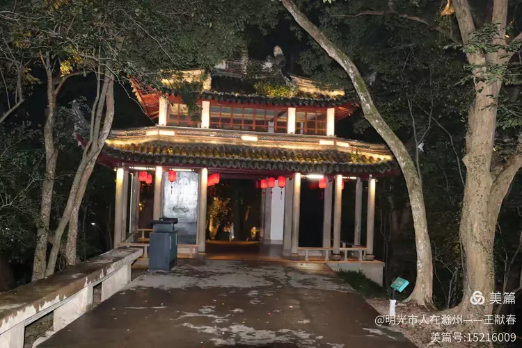 再往前,一块圆形铭牌嵌在岩石之中,灯光打在上面,图案清晰可见。它不声不响地讲述着一段被遗忘的故事。树影婆娑,光影交错,像是时光的指针在这里轻轻停顿,让人忍不住放慢脚步,生怕惊扰了这份古朴的静谧。