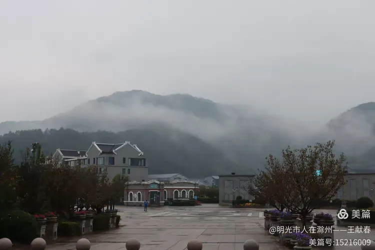 清晨的毛毛细雨轻轻洒落,我推开宾馆的门,迎面是湿润的空气与一片静谧。头顶“四季清藤花园酒店”的招牌在微光中若隐若现,灰墙黛瓦的建筑在雨雾中显得格外沉稳,屋檐下几片树叶轻轻摇曳,仿佛也在聆听这小镇苏醒前的呼吸。门前的灌木丛枝叶繁茂,雨水顺着叶片滑落,滴进泥土,悄无声息。整条街还沉在朦胧里,只有我踩着湿漉漉的石板路,开始这场随性的晨间漫步。