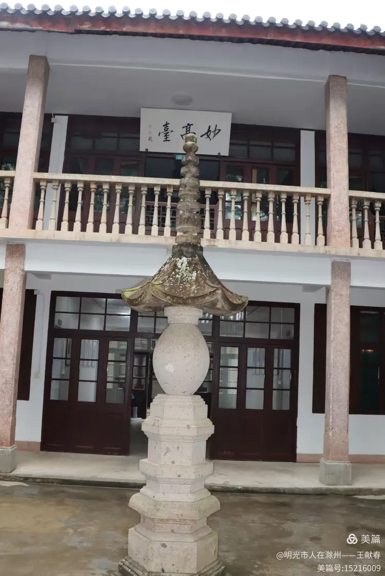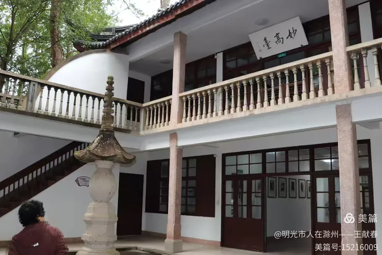 妙高台的庭院幽静,白墙黛瓦,二楼牌匾上“妙高台”三字清晰可见。院中一座石塔静静伫立,周围绿树环抱,仿佛时间在这里放慢了脚步。我坐在石阶上小憩,想象当年那些在此踱步的身影——他们看的,是否也是这一片云雾缭绕的山色?只是心境,早已天差地别。