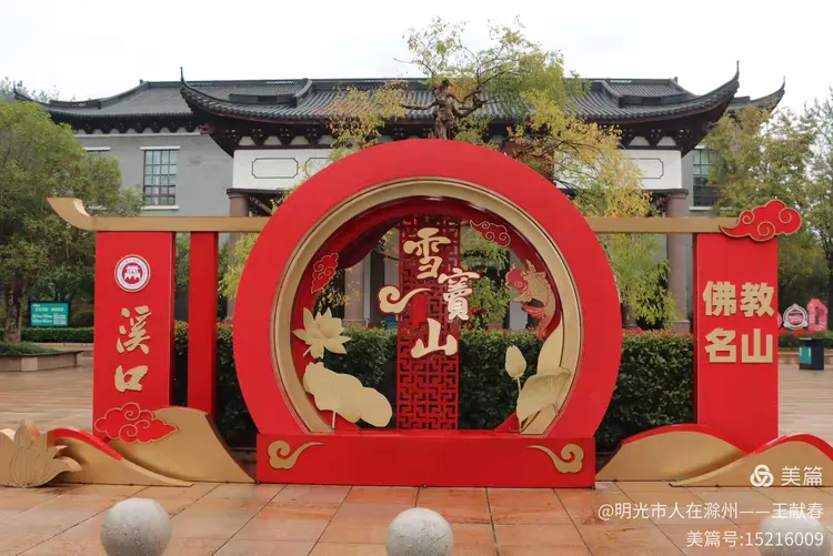 穿过一道红漆圆拱门,门楣上“溪口”与“佛教名山”八字金光微闪,我正式踏入雪窦山的怀抱。两侧古木参天,黑瓦屋檐在绿意中若隐若现,灯笼高挂,风过时轻轻摇晃,像是在低语。这扇门,不只是地理的入口,更像是从尘世步入清境的界碑。