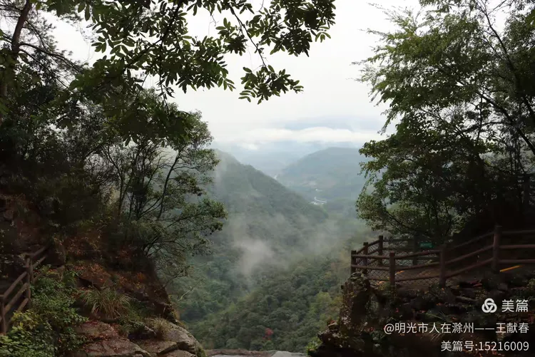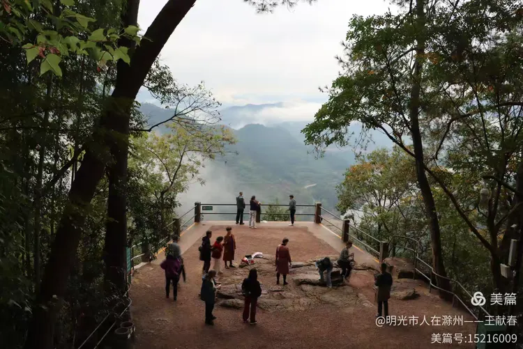 观景台上,人群渐渐聚拢。大家或倚栏远眺,或静静伫立,目光投向那被云雾缠绕的山峦与若隐若现的小径。湖水在山脚如镜般铺展,倒映着天光与树影。我靠在栏杆上,听风拂过耳畔,忽然觉得,这一路所见的不只是千丈岩、妙高台、幽禁地,更是一段段被山林封存的岁月——它们沉默,却比任何文字都更真实。