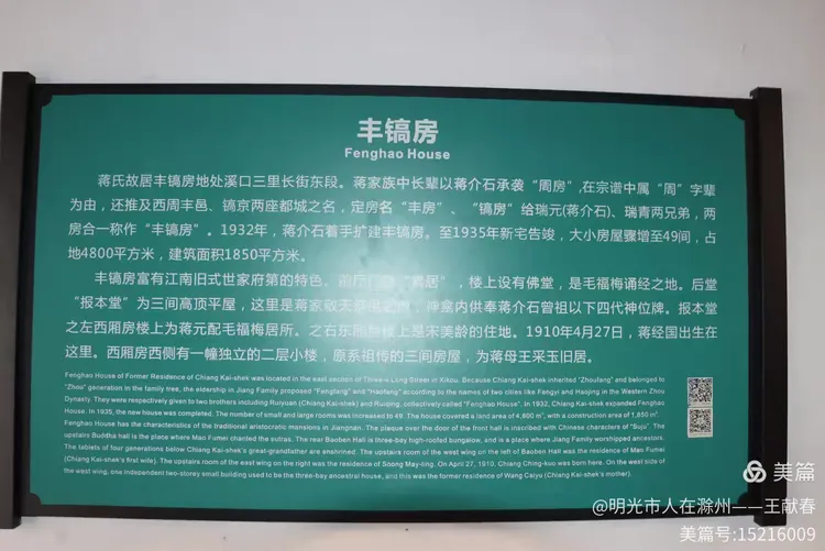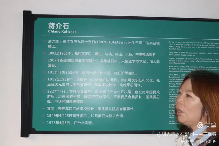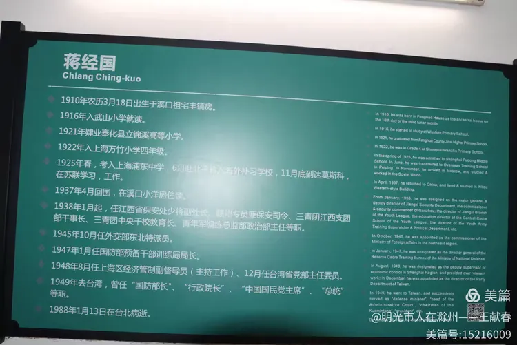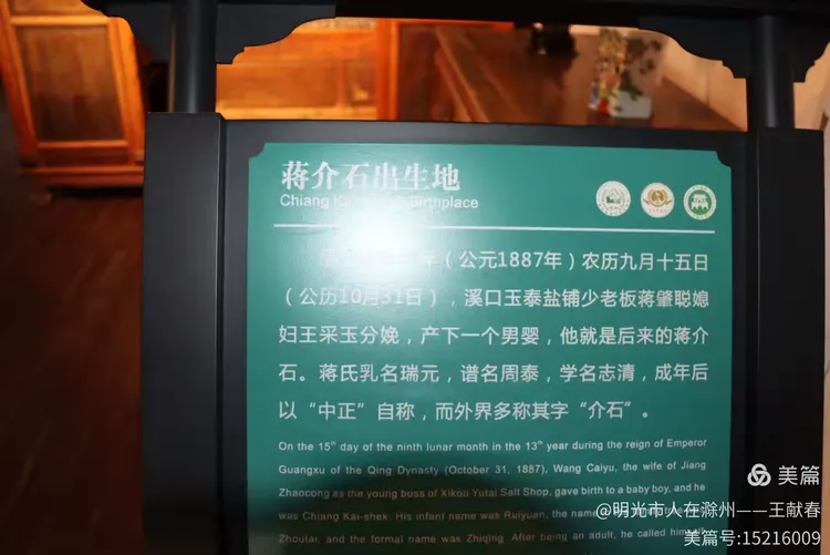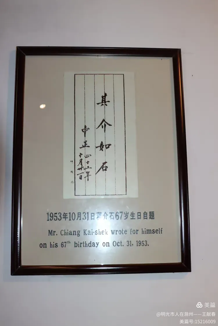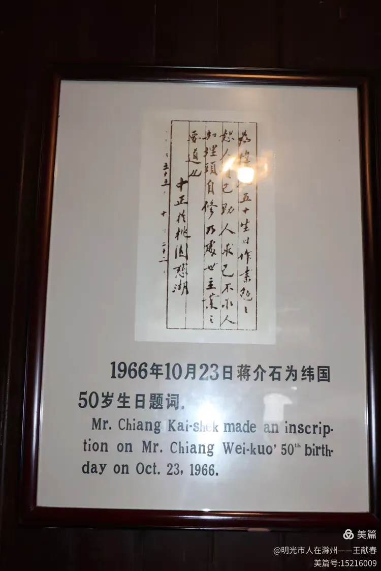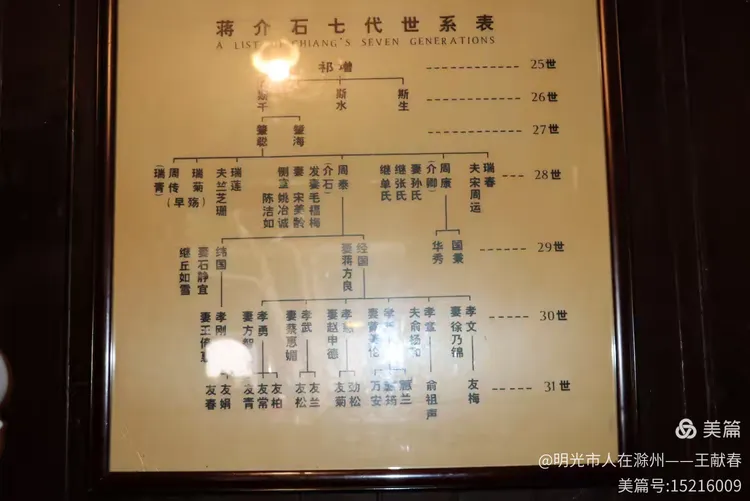 一面墙上挂着“蒋介石七代世系表”,从第25代到第30代,名字依次排列,脉络清晰。深色木框衬着浅黄纸页,黑字肃然。我望着那密密麻麻的名字,忽然觉得,一个家族的延续,不只是血缘的传递,更是记忆与身份的承重。
