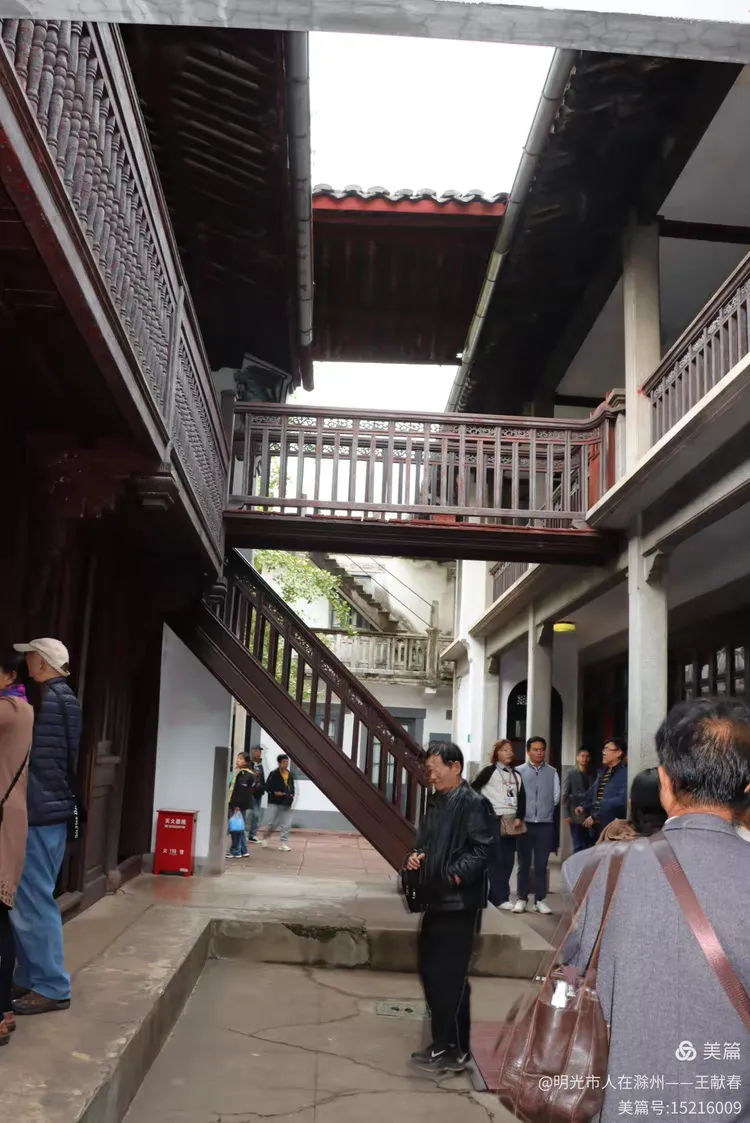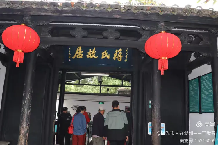 门楣上悬挂着“蒋氏故居”的牌匾,黑底金字,两侧红灯笼静静垂挂,虽未点亮,却仍透出几分庄重的喜气。木质的门框已被岁月磨出温润的光泽,门缝间透出老屋特有的气息——混合着木香、尘埃与旧时光的味道。几位游客正陆续进入,脚步轻缓,像是怕惊扰了沉睡的记忆。我跟在人群之后,踏进这座江南世家的旧宅。
