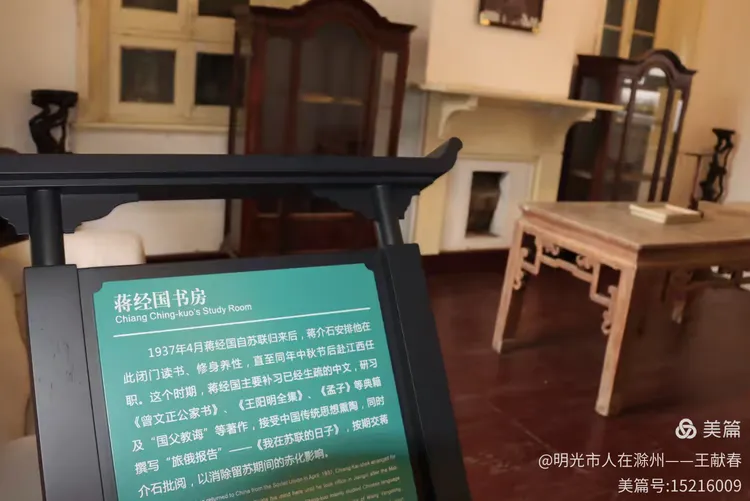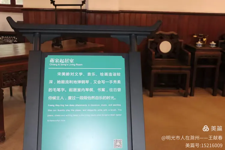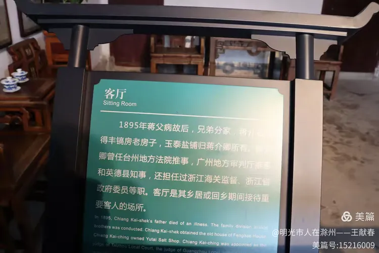 路过一间标着“客厅”的房间,门口的牌子写着:“1895年蒋父病故后,兄弟分家。”短短一句,道尽人世变迁。屋内陈设古朴,茶具静置,木椅沉默。分家,不只是财产的分割,更是命运的分流。而这客厅,曾见证了多少沉默的对话与未言的离愁?