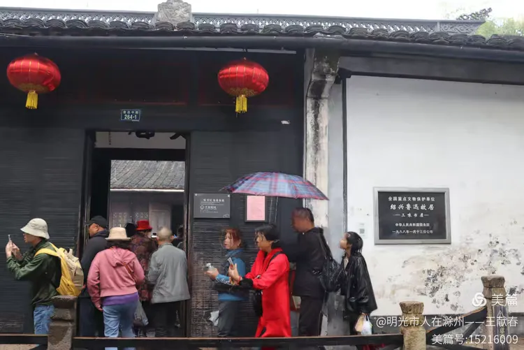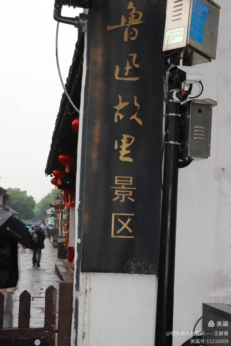 灰瓦白墙,木柱撑起门廊,红灯笼在雨中格外醒目。几人站在门前,有人拍照,有人低头看手机。可无论动作如何现代,这建筑本身就像一本打开的书,让人不自觉放低声音。我站在檐下,看雨丝斜织,恍惚看见少年鲁迅从屋里跑出,踩着泥泞奔向百草园。