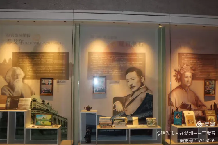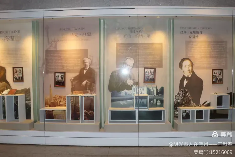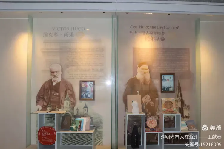 玻璃柜中,雨果与托尔斯泰的肖像并列而立,两位文学巨匠的目光穿越时空。下方文字介绍他们如何用笔改变世界。我忽然笑了——鲁迅,不也正是这样的人吗?他没去过法兰西或。。。。。。