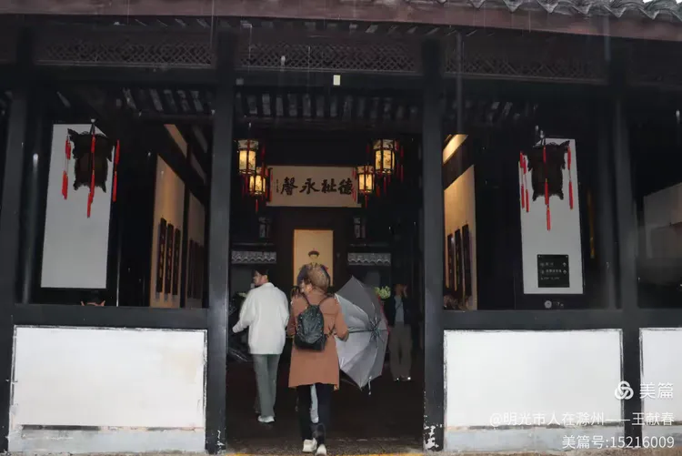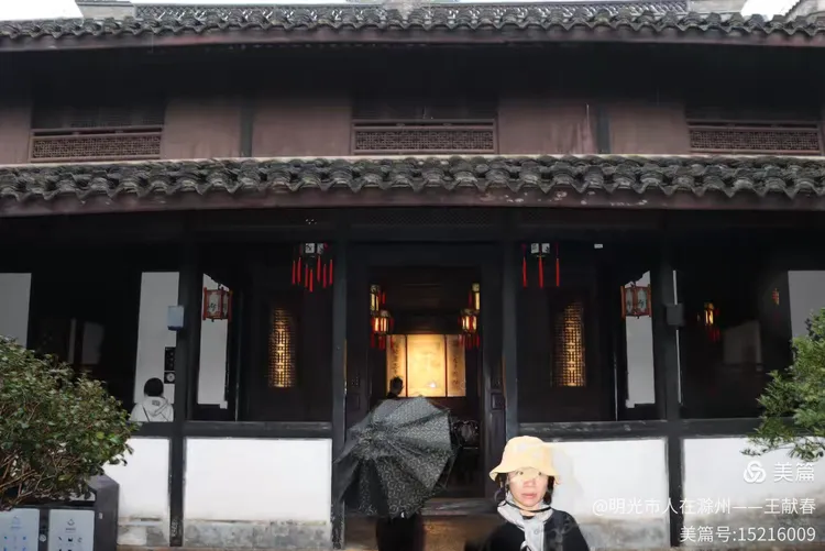 穿过一道门廊,灯笼映着湿漉漉的地面,几位游客缓步而行。木梁雕花精美,檐下滴水成线,节奏轻缓。这里没有喧嚣,只有脚步与雨声交织的宁静。我忽然明白,为何鲁迅笔下的世界总带着一种沉静的力度——原来,这片土地本身就懂得沉默的力量。