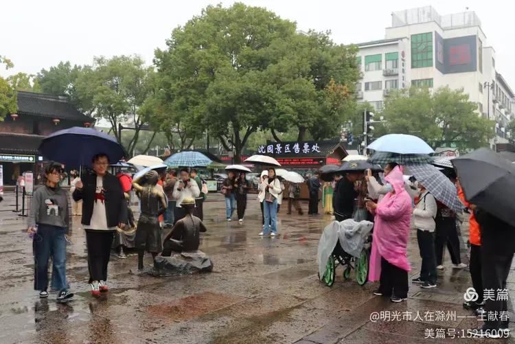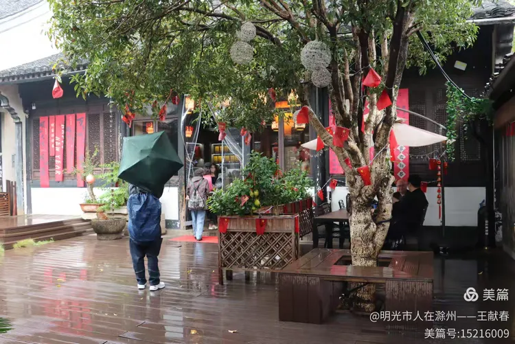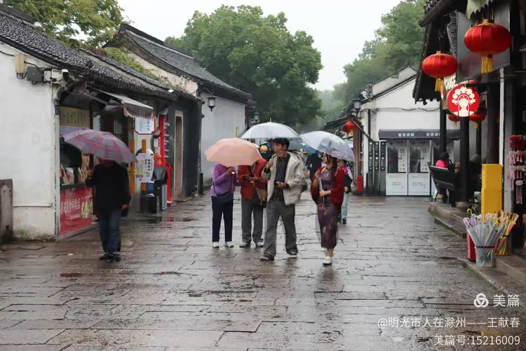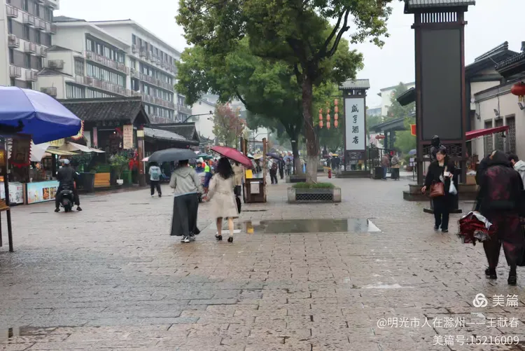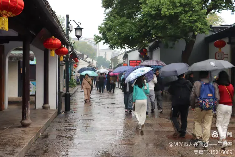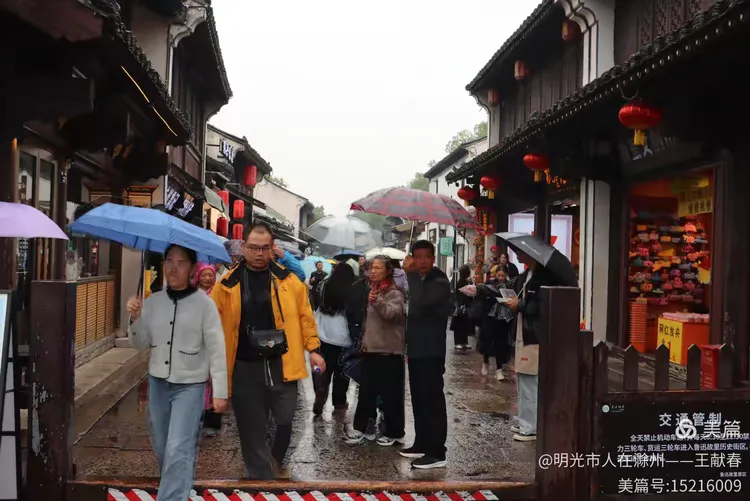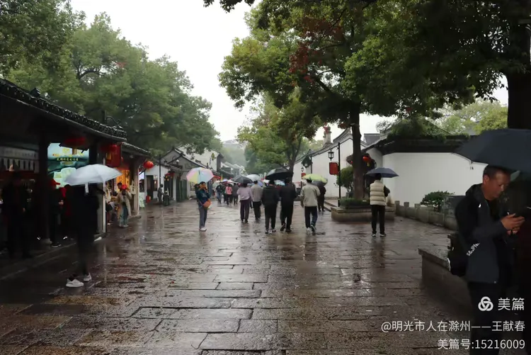 雨中的古街静谧悠长,两旁是灰瓦白墙的老屋,行人撑伞缓行,伞色斑斓,像移动的花。树影婆娑,叶尖滴水,青石路映着天光与人影。这不就是鲁迅笔下的江南?湿润、安静,又藏着无数故事。我走得很慢,生怕惊扰了藏在墙缝里的旧时光。