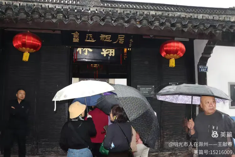 “鲁迅纪念馆”六个大字悬于门楣,端正有力。对联贴在两侧,红灯笼高挂,门前雨伞点点。我站在门口,深吸一口气——这里不只是纪念,更是一种传承。每一个走进来的人,都在用自己的方式,续写那一行未完的句子。