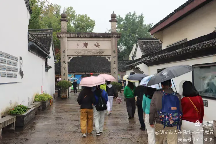 一座传统门楼静静伫立,红灯笼在雨中轻轻摇曳,像是守候百年的灯火。门前人群微聚,有人收伞,有人拍照,低声交谈中透着敬意。木门深重,雕花细腻,每一道纹路都像是诉说着旧日书声琅琅的清晨。这里是通往记忆的入口,一步跨过,便走进了那个“早”字刻在课桌上的年代。