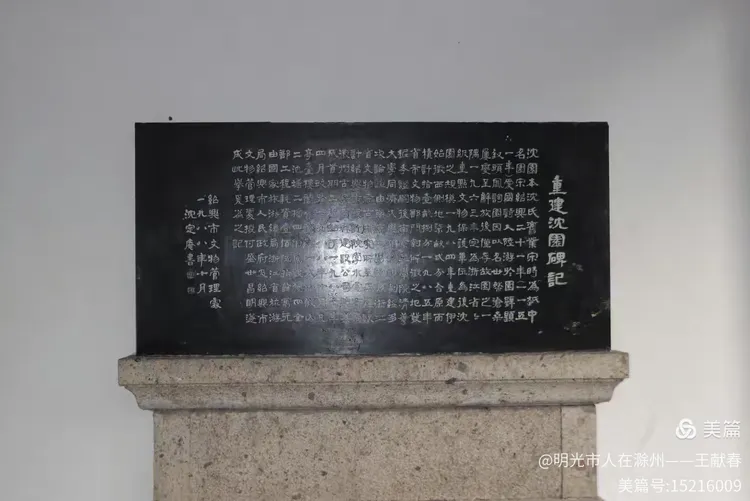 “重建沈园碑记”几个金字在白墙前肃然陈列,碑文详述园子的兴衰流转。雨丝轻拂石面,仿佛在替后人擦拭记忆。每一道刻痕,都是时间的年轮,记录着毁与建、忘与忆的轮回。站在这里,才真正懂得:沈园,不只是园林,更是文化的重生之地。