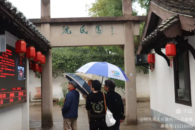 清晨的雨丝如细密的针脚,织满了整个绍兴城。我撑伞走过青石小巷,远远便望见那座写着“沈氏园”的牌坊在雨雾中静静伫立。红灯笼微微摇晃,映着白墙黛瓦,像从古画里走出的一幕。几个身影在檐下穿行,脚步轻缓,仿佛怕惊扰了这园子百年的梦。