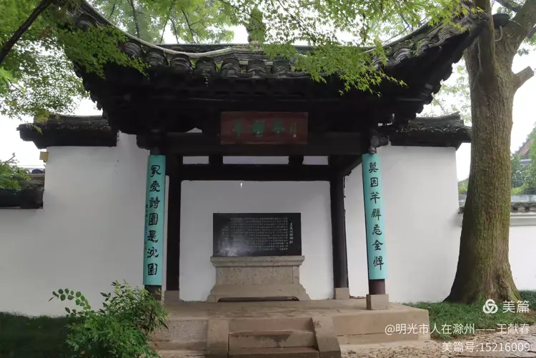 园门深处,青柱红匾,对联工整,一块黑石碑静立前方,字迹庄重。绿树浓荫,将喧嚣隔在园外。这不只是一道门,更像一道界——跨过它,便从尘世步入诗境,从当下退回南宋的某个清晨。