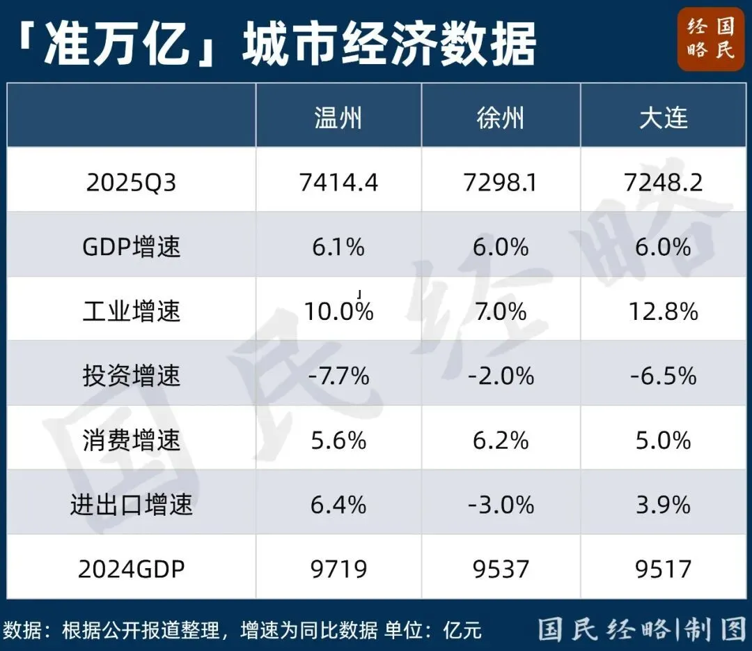 一旦成真,温州将成为浙江第3个万亿城市,徐州是江苏第6座万亿城市,大连则打破东北没有万亿城市的尴尬。