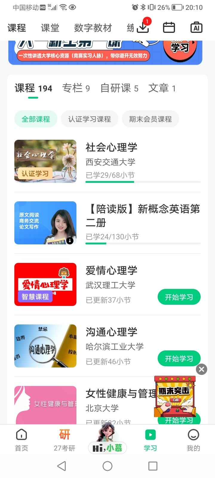 你在中国大学慕课APP学了啥课程呀?