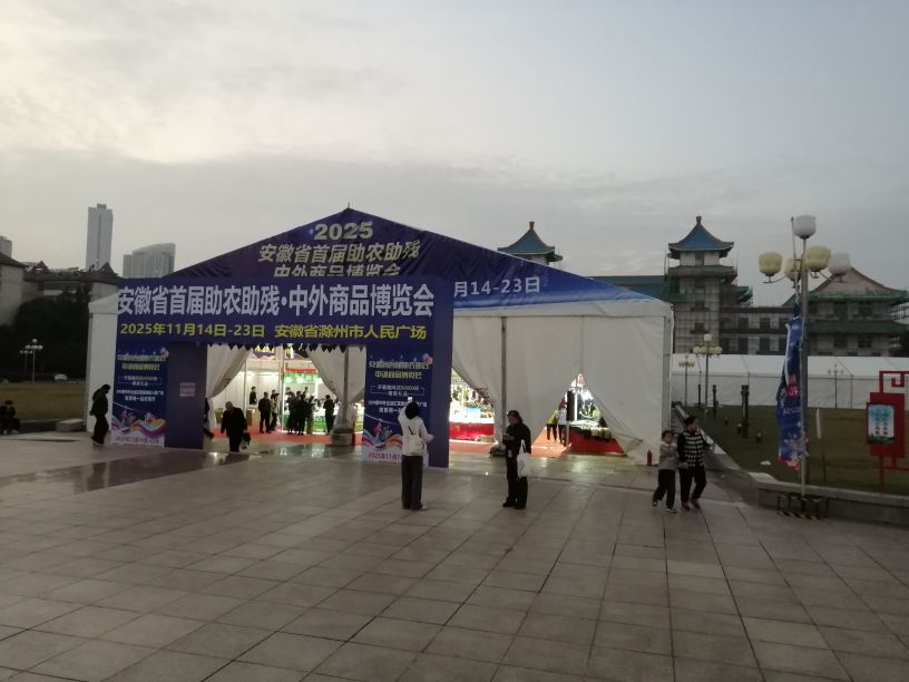 滁州人民广场,支起了三个偌大的展览大厅。安徽省首届助农助残·中外商品博览会在此隆重开幕。