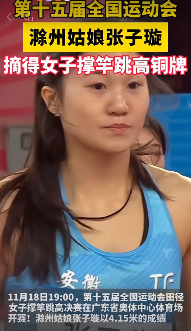 11月18日晚,第十五届全国运动会田径女子撑竿跳高决赛在广东省奥体中心体育场开赛!滁州姑娘张子璇以4.15米的成绩夺得女子撑竿跳高季军!