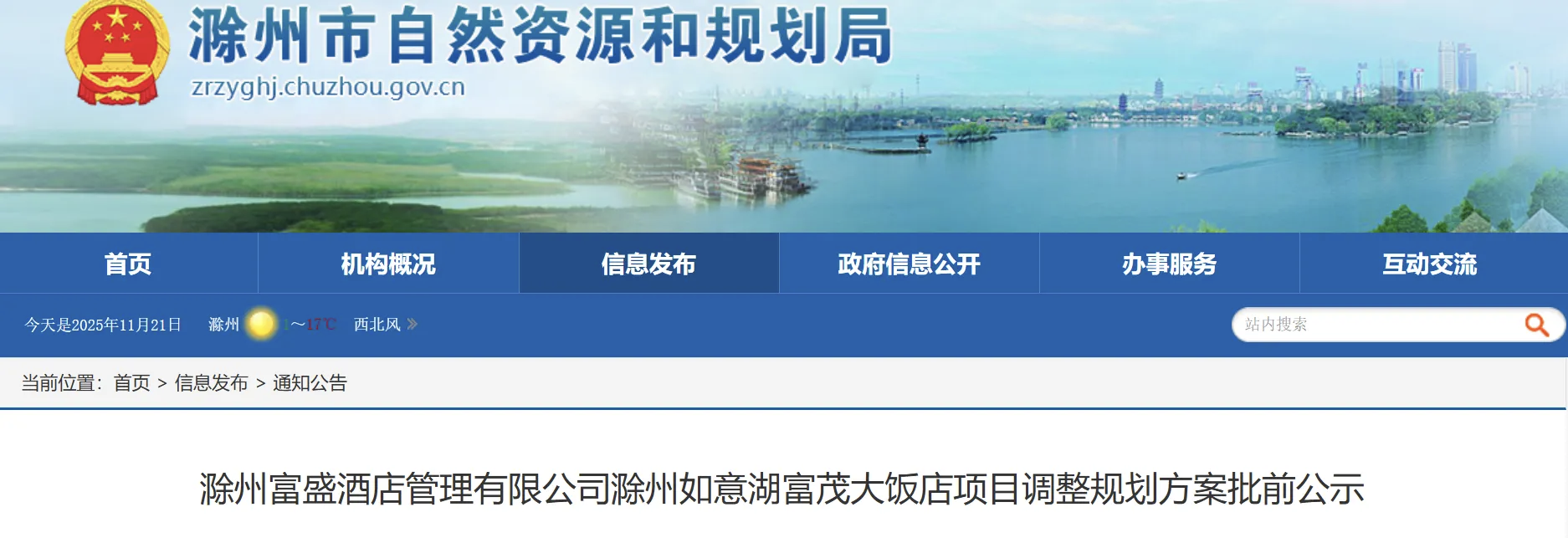 项目概况:该项目位于滁州市宝山路与淮河路交叉口的东北侧,建设单位为滁州富盛酒店管理有限公司。主要调整内容: