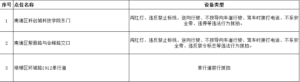 为进一步提高交通参与者的交通安全意识,预防和减少道路交通事故发生,滁州市公安局交通巡逻警察支队拟于2025年11月30日启用以下电子监控抓拍设备,现将设备类型和点位分布公示如下: