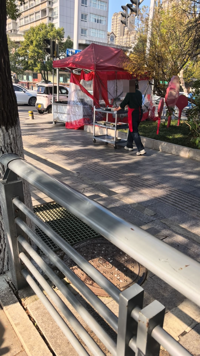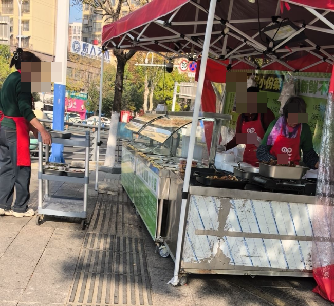 就这样,无任何遮盖,在人行道推着。还用再去看后厨吗?