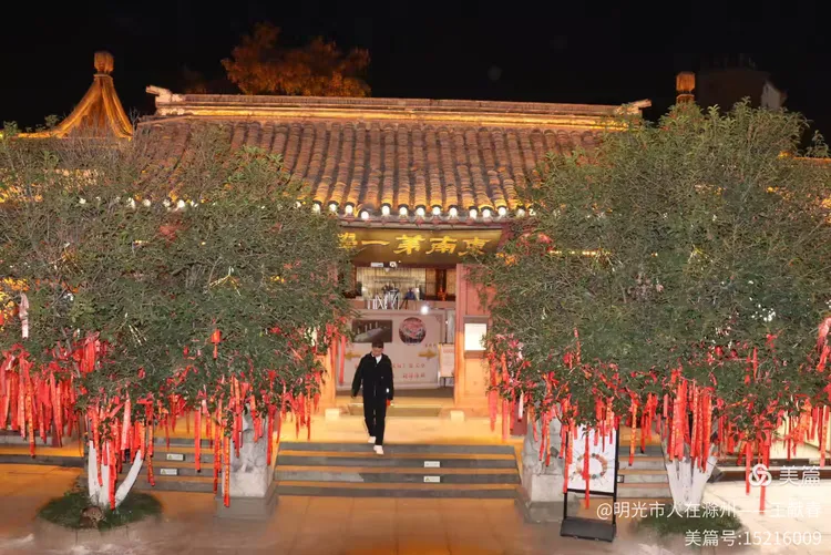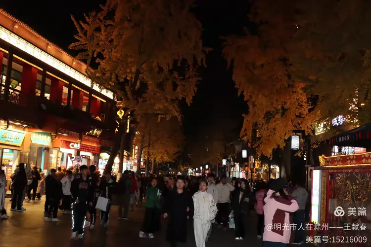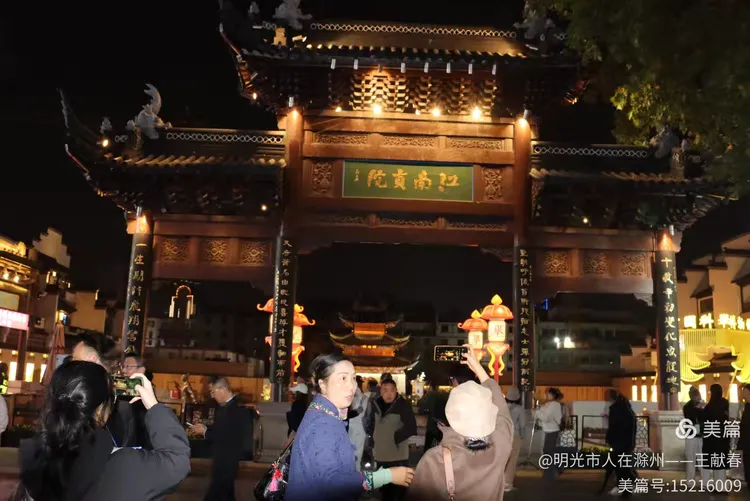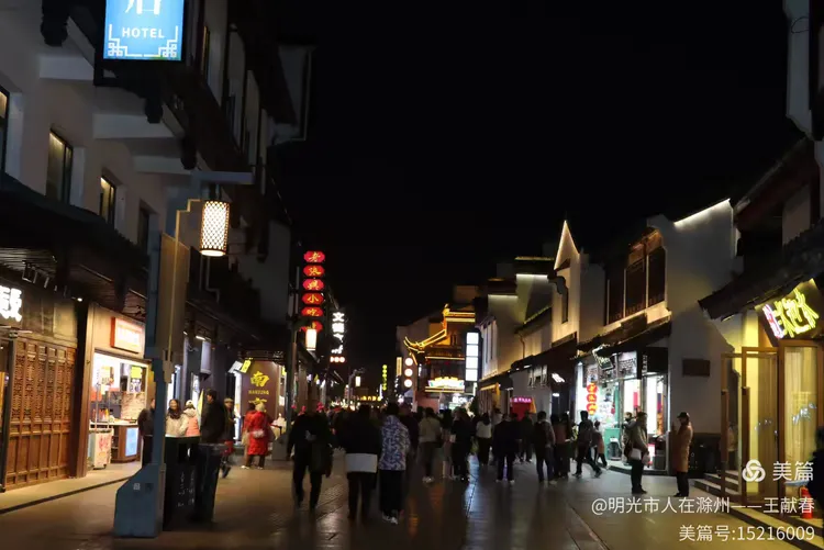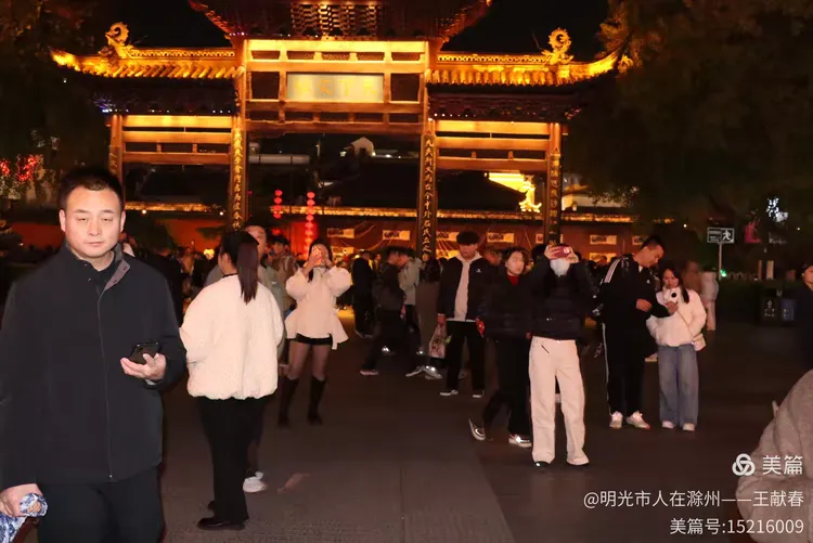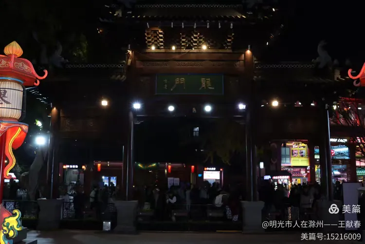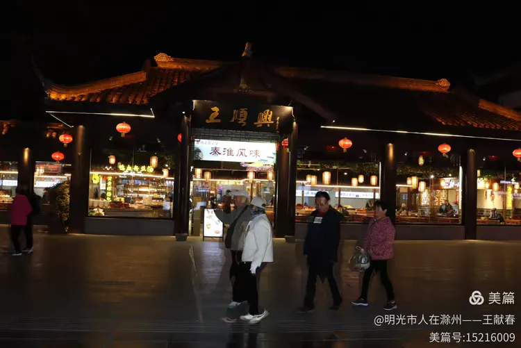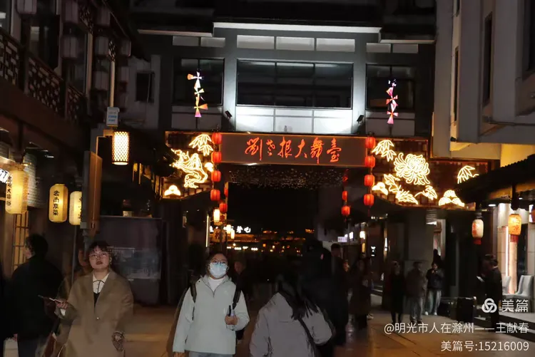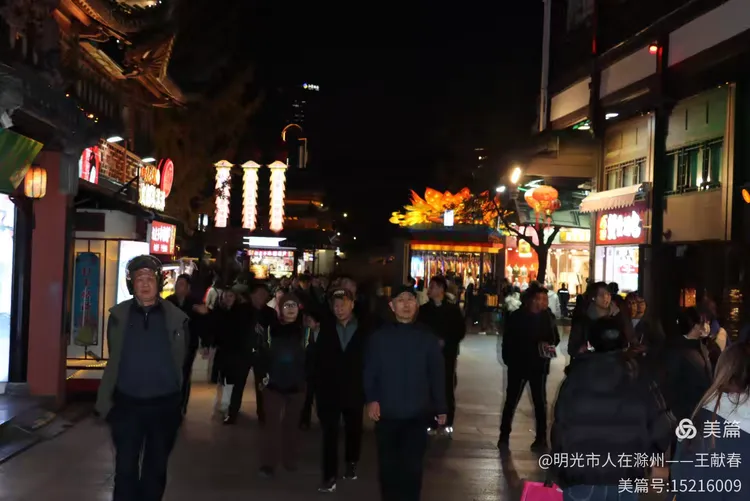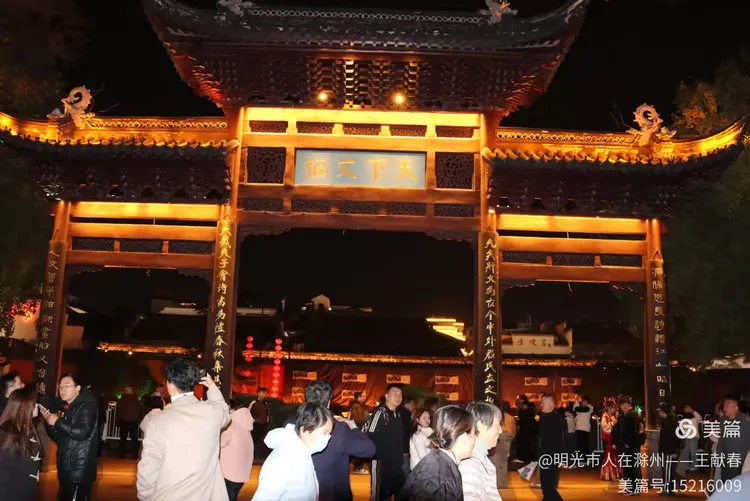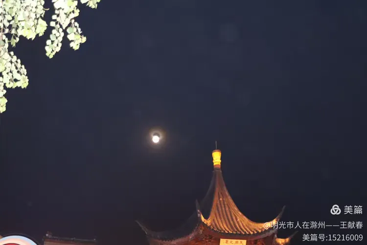 明月当空,街道两旁灯火通明,牌坊下人来人往。古树在灯光中投下斑驳的影,像是岁月的印章。我抬头望了望天,又看了看眼前的人间烟火,忽然觉得:活着,真好。