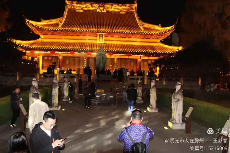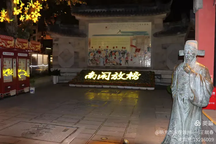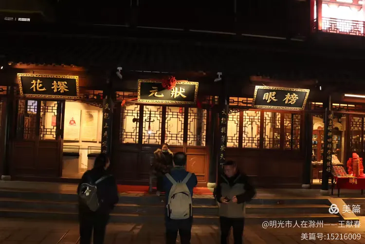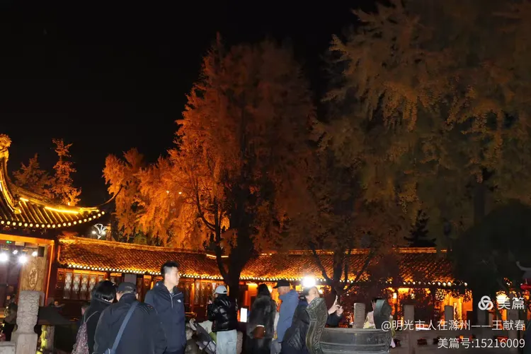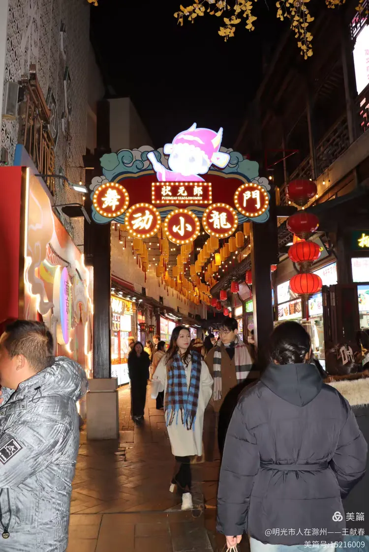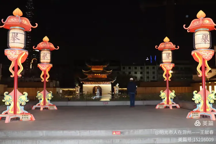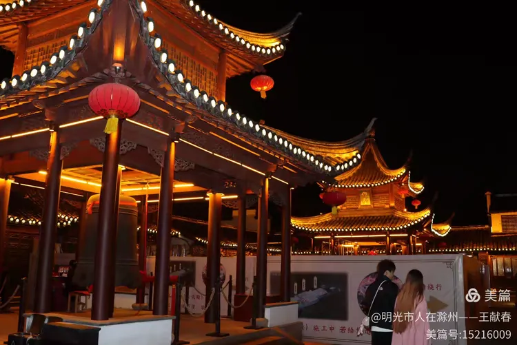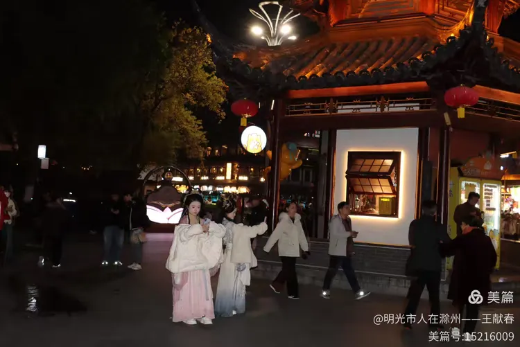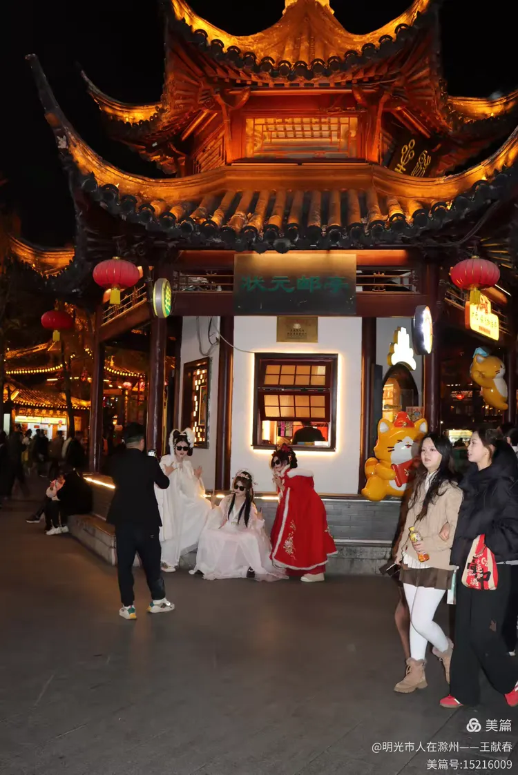 明月当空,街道两旁灯火通明,牌坊下人来人往。古树在灯光中投下斑驳的影,像是岁月的印章。我抬头望了望天,又看了看眼前的人间烟火,忽然觉得:活着,真好。