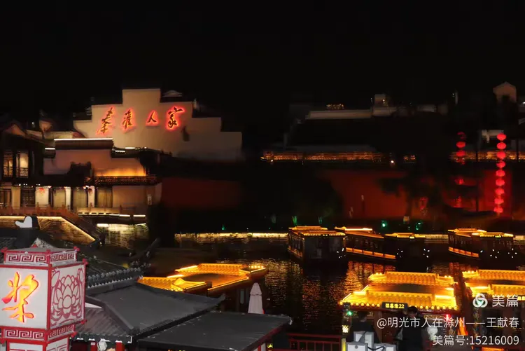 水边,“秦淮人家”四个大字在灯光下格外醒目。游船倒映着金光,岸边的建筑在夜色中若隐若现,古典与浪漫在此刻交融。我站在那儿,久久未动——有些地方,看一眼,心就静了。