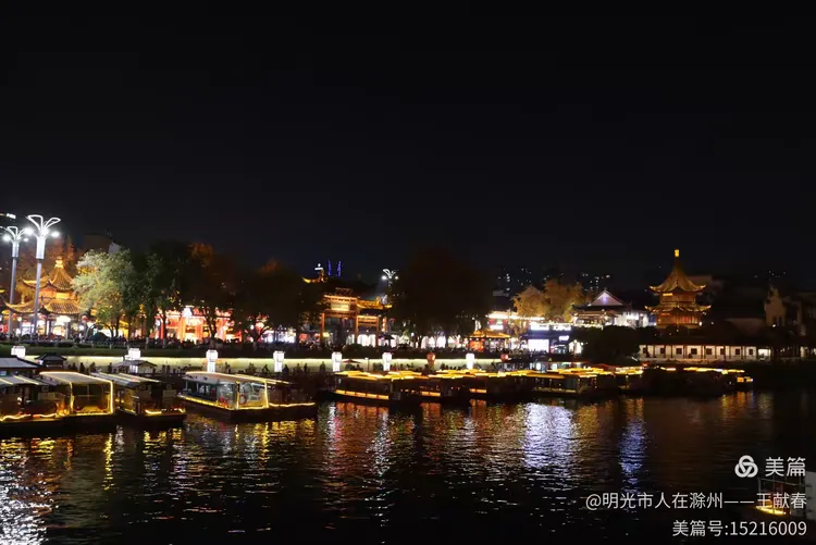 游船静静停靠,河面倒映着两岸的璀璨,波光如碎银般闪烁。传统建筑在灯光中显得格外迷人,仿佛从画中走出。我站在岸边,听远处传来一阵古筝声,曲调悠扬,像是从千年前悠悠传来。这一刻,秦淮不只是风景,它是一首活着的诗。