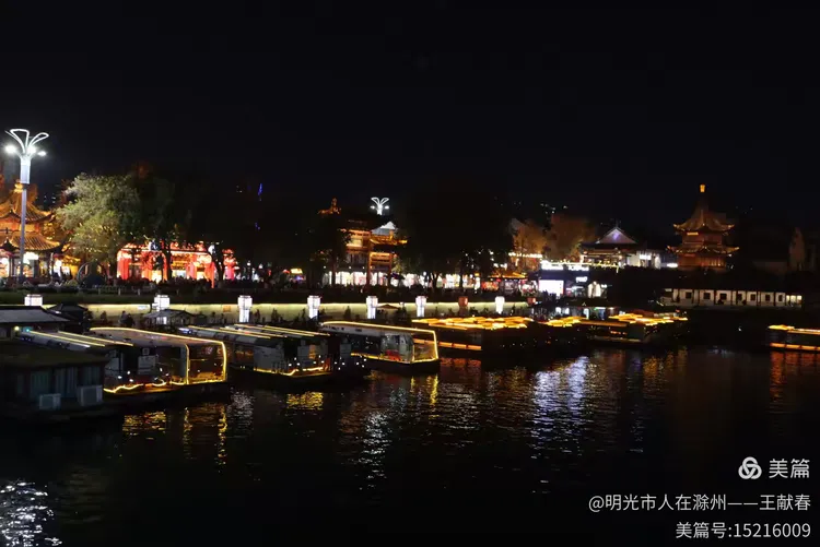 明月高悬,河畔灯火与月光交辉,游船静泊,水面如镜。两岸的建筑在光影中显得古朴而温柔,仿佛时间也放慢了脚步。我站在桥头,忽然觉得,这夜色不只是风景,它是一剂良药,治好了我连自己都没察觉的疲惫。