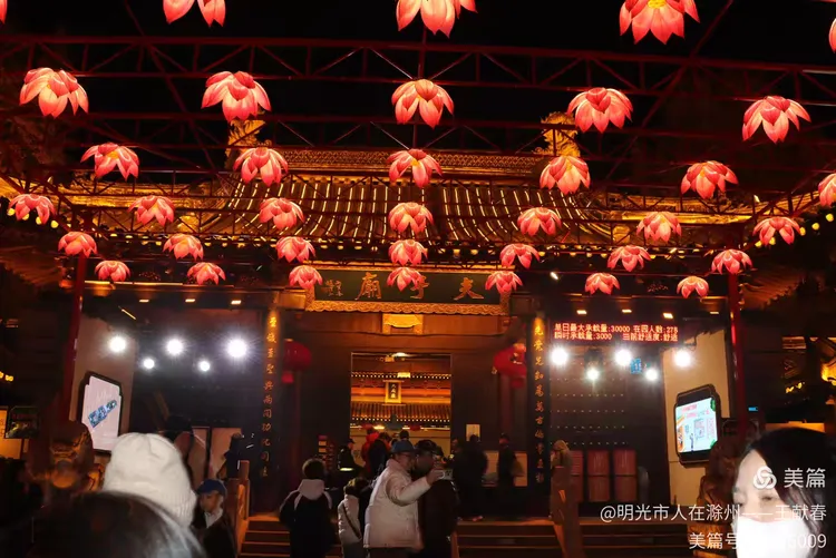 再往前,一座名为“天园楼”的建筑在夜色中熠熠生辉。飞檐斗拱间缀满灯饰,中式纹样在光影中流转,像一幅会呼吸的画卷。人们在楼下闲逛、谈笑,有情侣依偎着拍照,有老人慢悠悠地踱步。现代的喧嚣与传统的轮廓在此刻交融,不突兀,反倒和谐得让人心安。我站在街心,忽然觉得,这样的夜晚,比任何药都更能治愈疲惫。