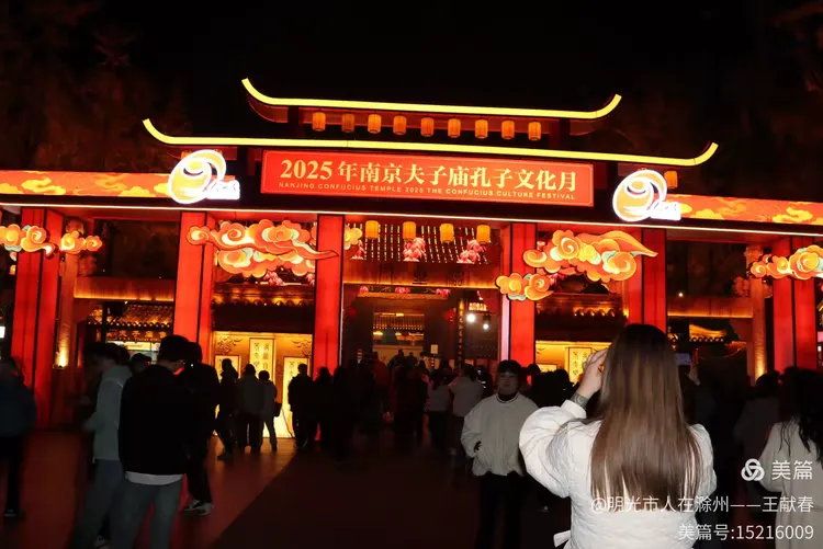 夫子庙入口处,红色牌坊上写着“2025年南京夫子庙孔子文化月”,游客如织,热闹非凡。我挤在人群中,却感到一种奇妙的平静。原来,文化的温度,是可以穿透