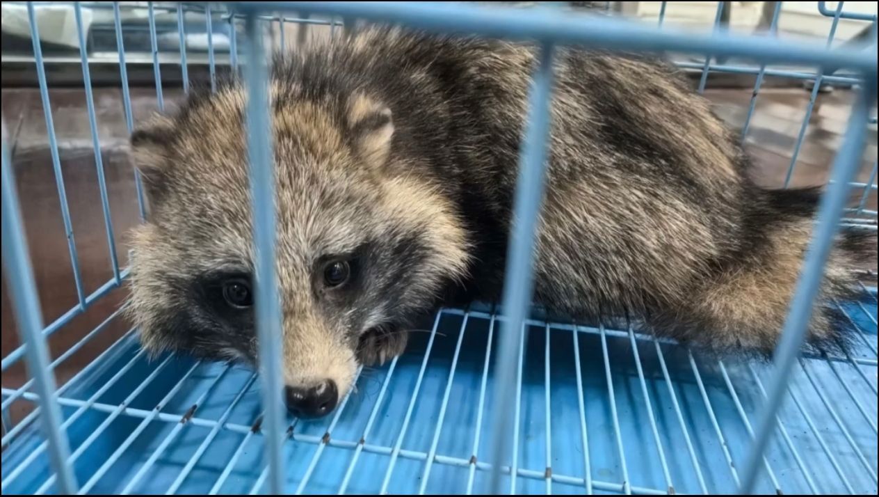 “小浣熊”一直缩在角落杂物堆里不敢出来,因不清楚其身体状况,民警请来专业救助人员将其带至救治地点检查。经了解得知,该“小浣熊”是国家二级保护动物貉,次日,民警将其放归大自然。