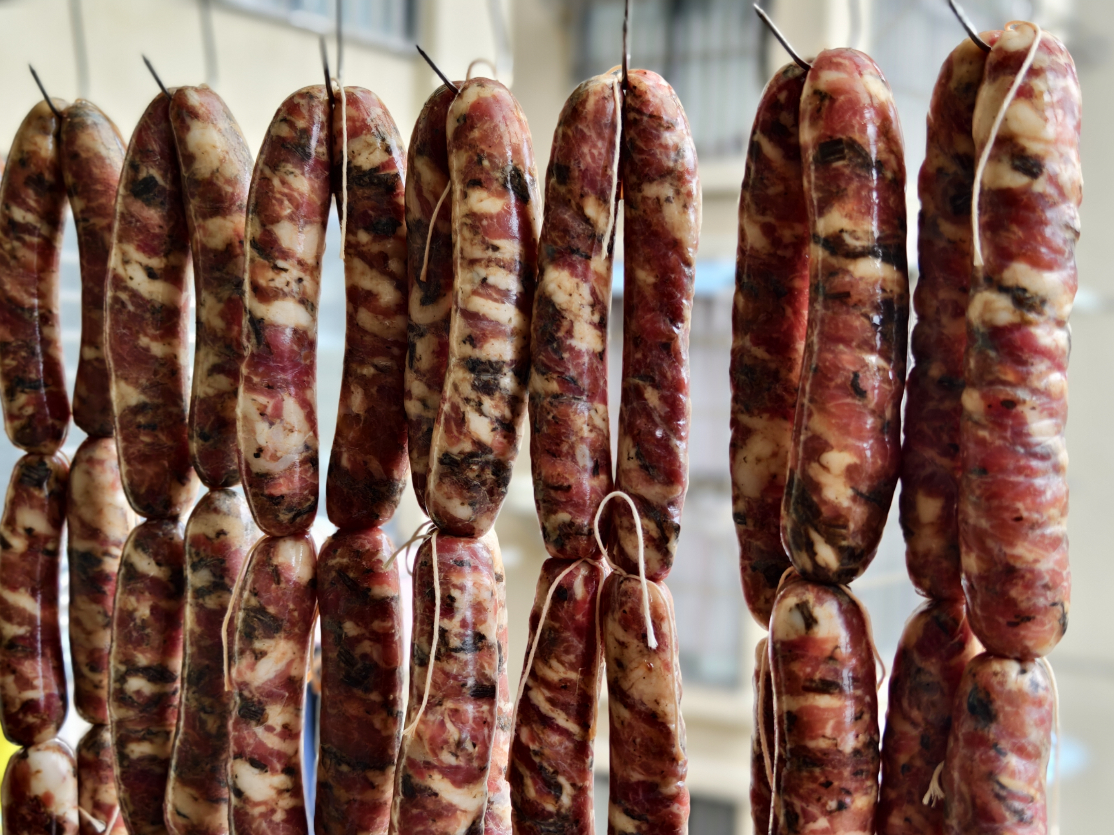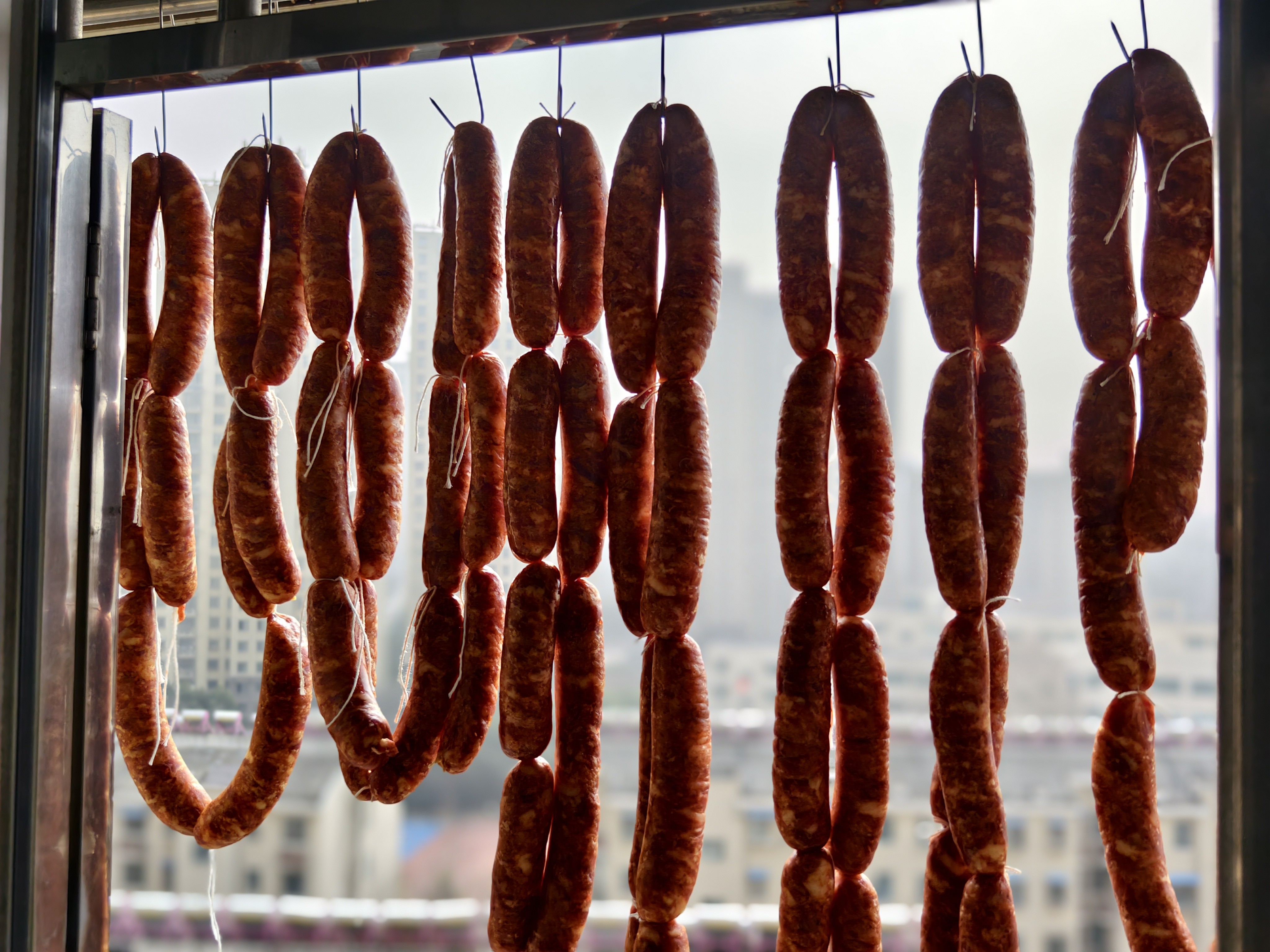 昨天灌梅干菜香肠、麻辣糯米香肠,