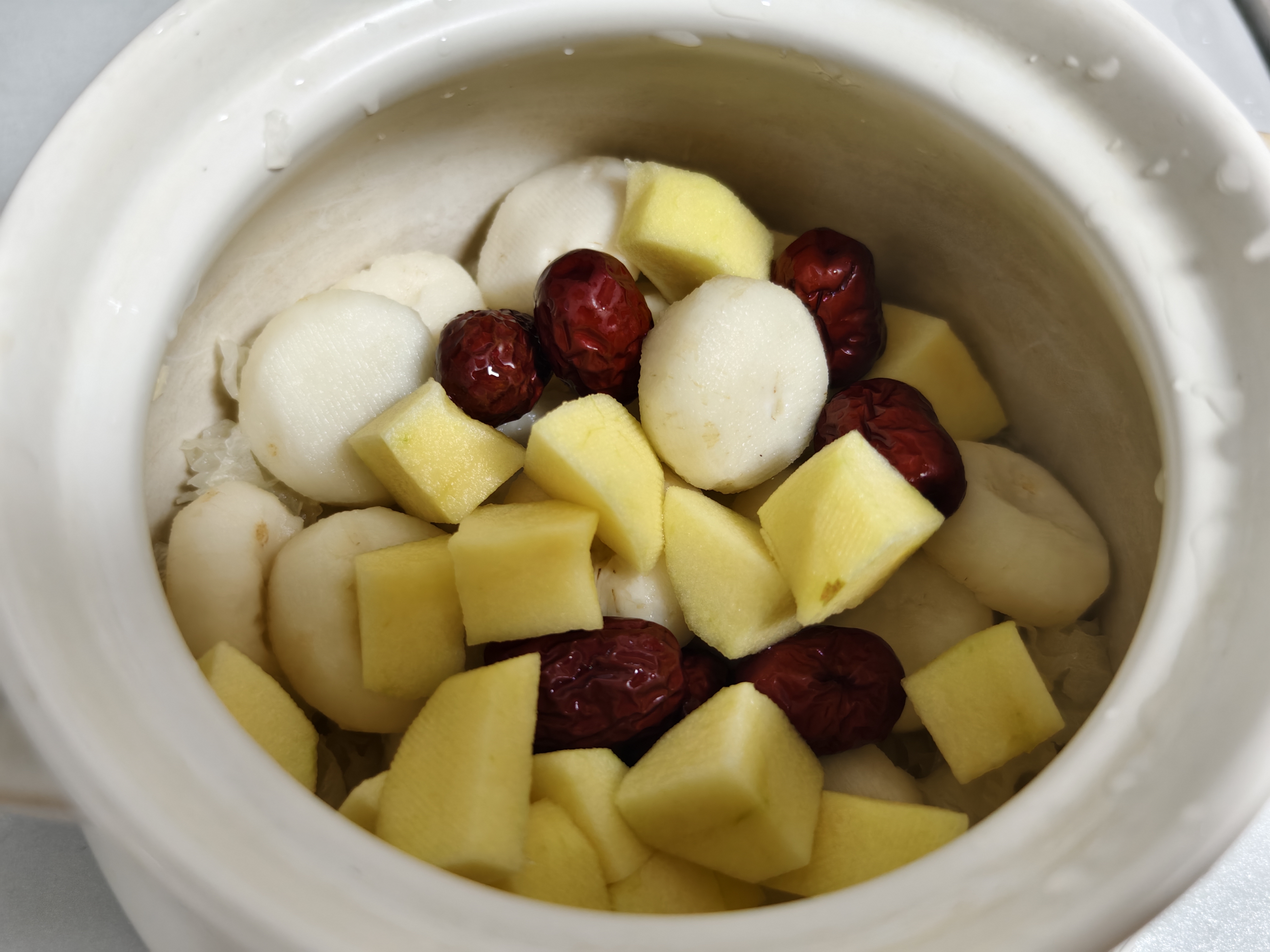 今天龙须茶卤鸡蛋、苹果银耳马蹄汤!