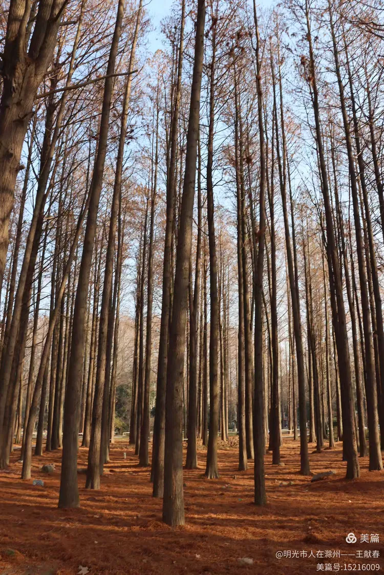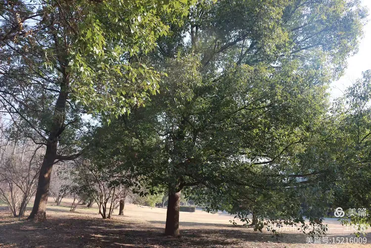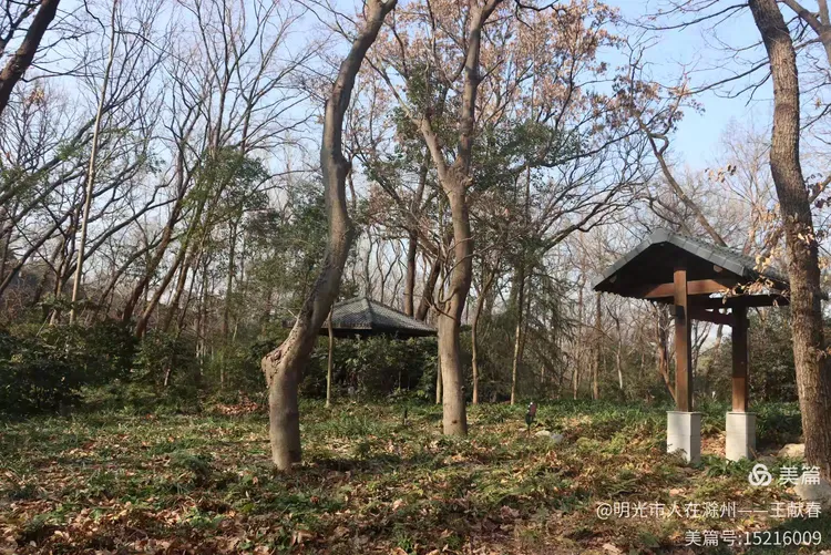 再往深处,一条落叶覆盖的小径通向两座木凉亭,藏在高树之间,古朴而安静。阳光透过稀疏的枝叶洒下,光影斑驳,像是时间在这里放慢了脚步。我坐在亭中,掏出随身带的本子,记下几行字,又合上——有些时刻,不必记录,只需感受。