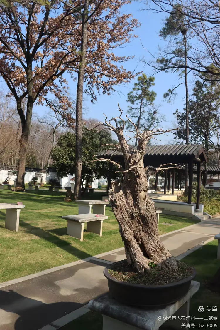 一条小径蜿蜒伸向林深处,两旁的枯枝交错成天然的拱廊,阳光从缝隙间洒下,斑驳地铺在小路上。几张长椅静置在树影里,仿佛专为停驻而设。我坐在其中一张上,听见远处有人低声交谈,还有轮椅缓缓碾过落叶的轻响。那一刻,园子不再是植物的展览场,而成了人与自然共处的温柔空间。