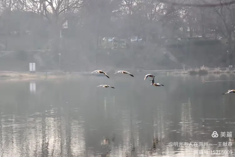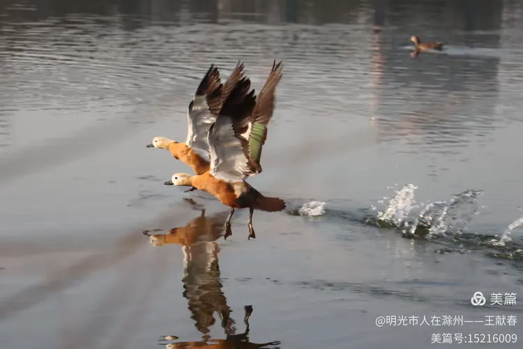 湖面如镜,忽然被一阵扑棱声打破。两只鸭子从水边腾起,翅膀拍打水面,溅起细碎的水花,又迅速滑入空中,留下涟漪一圈圈荡开。它们飞得不高,却姿态轻盈,像是在练习一场无声的舞蹈。我站在岸边,看着它们的倒影在水中晃动、重合,又渐渐拉长,仿佛时间也被这水波揉得柔软了。