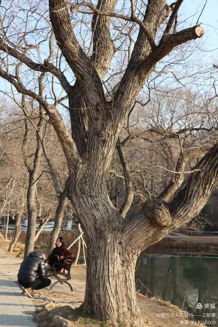 一棵老树伫立在水边,树干粗壮,纹理深刻,像一位沉默的长者。树旁的长椅上坐着一对老人,其中一人蹲在树根旁,似乎在拍照,又像是在细数年轮。我未打扰,只远远望着。这棵树,或许比植物园的历史还久,看过了多少春秋,又见证了多少人的来去。
