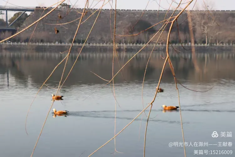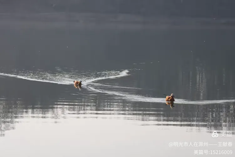 湖心处,两只鸭子正悠然游过,划出两道对称的涟漪,缓缓扩散,又悄然融合。它们的羽毛在阳光下泛着暖棕的光泽,头微微点动,像是在打量水下的世界。我蹲下身,看它们的倒影在水中轻轻摇曳,竟分不清哪一只是真,哪一只是幻。