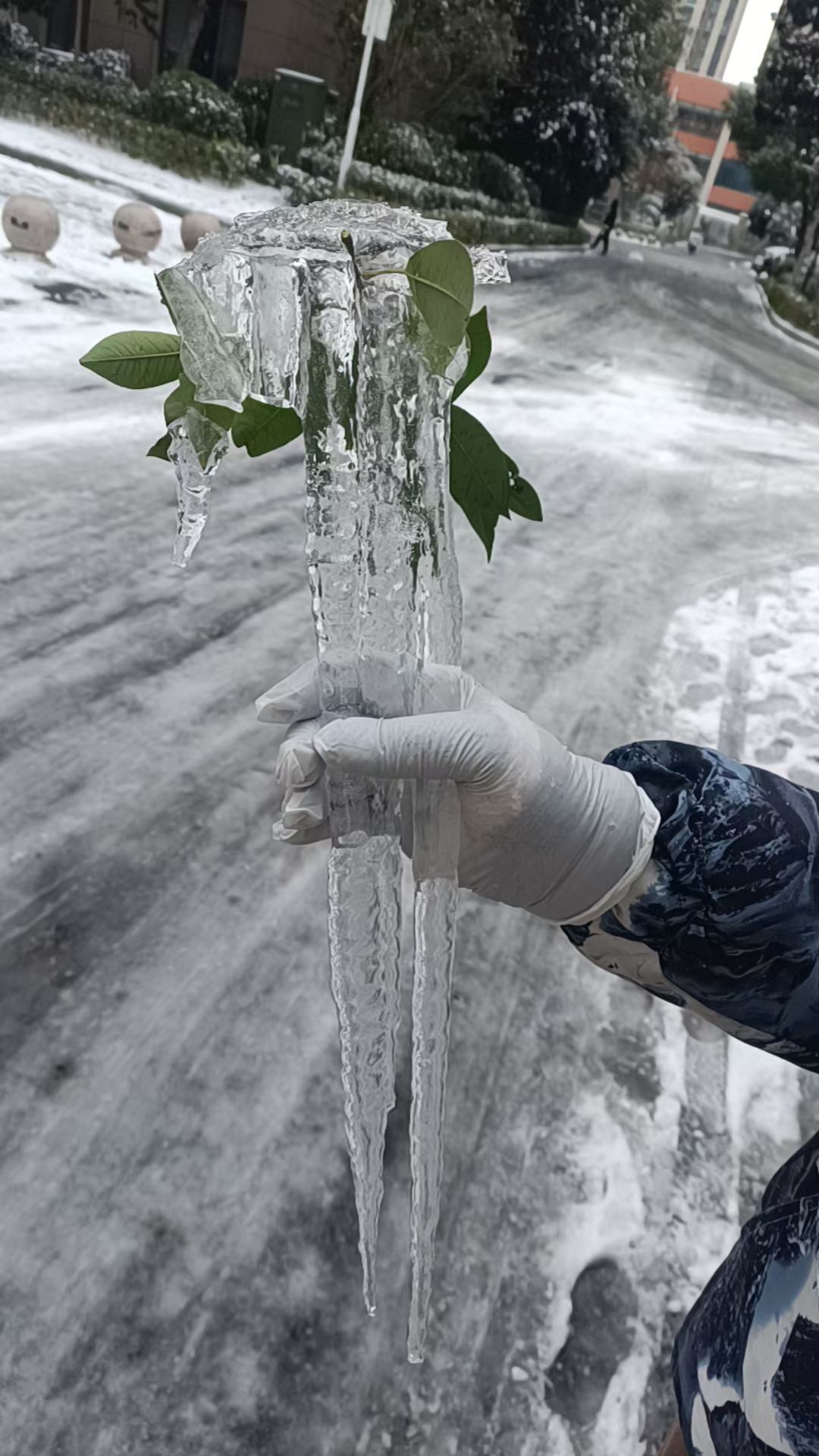 这是滁州城里久违的冬日限定景致——大寒时节的雨雪过后,一排排晶莹剔透的冰棱垂挂在街头巷尾的栏杆与屋檐上,宛如大自然精心雕琢的水晶帘。