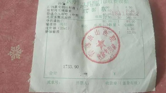 孙先生提供的票据,11月16日,他还继续花费1880元治疗