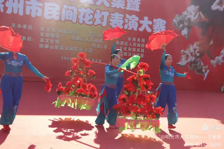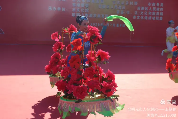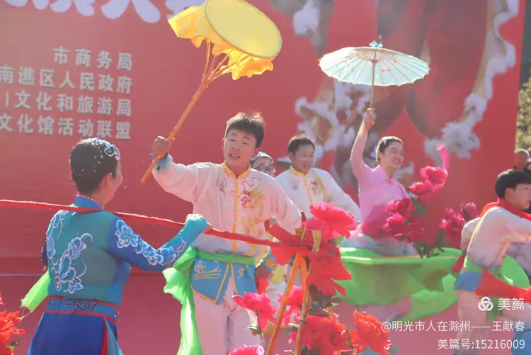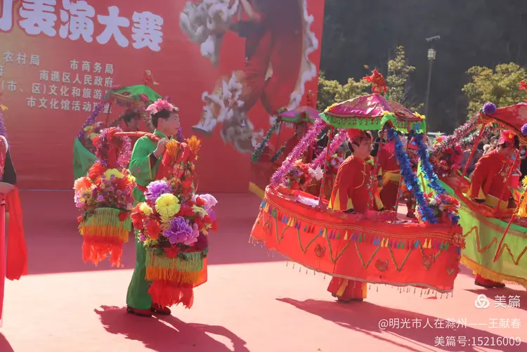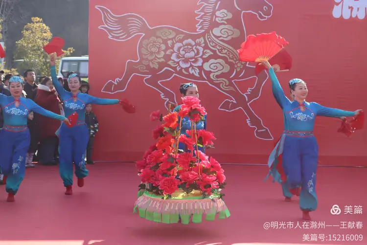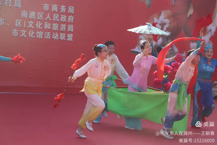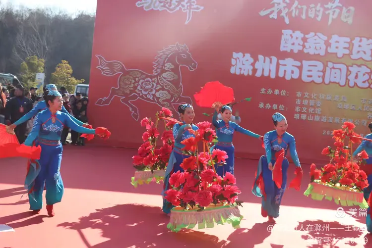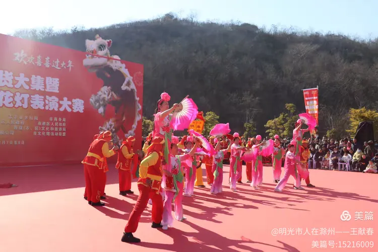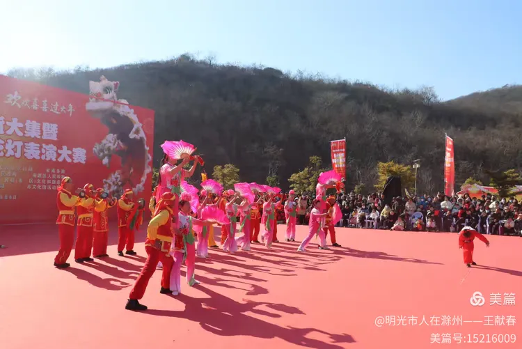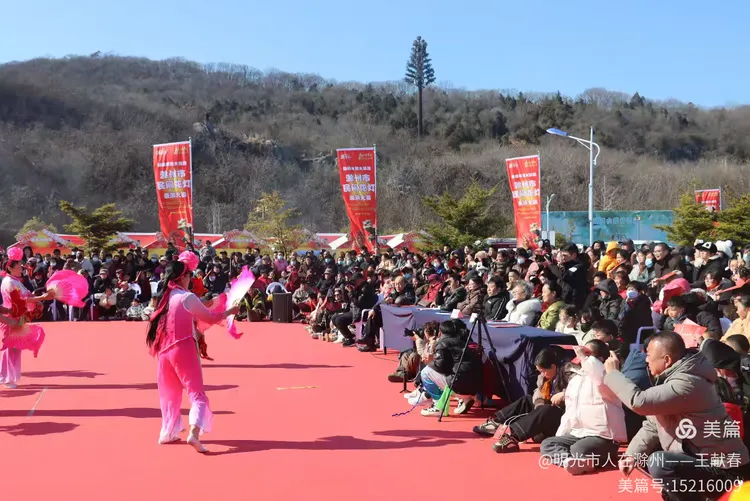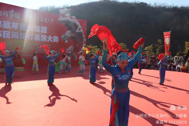 忽闻鼓点清脆,循声而去,见一方红台搭在林间空地。一群穿粉绿衣裳的舞者正甩开扇子,动作齐整如一人,粉扇开合间,像梅枝上忽绽的花。台下人围成半圈,有老人眯眼笑,有孩子踮脚张望,连山风都停了一瞬,只听扇声、鼓声、笑声,在琅琊山的午后,热热闹闹地撞在一起。