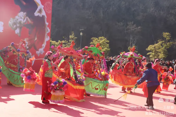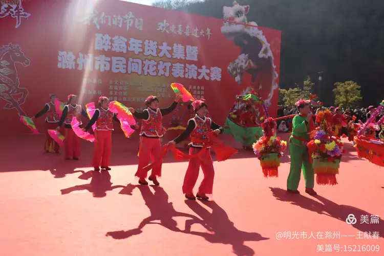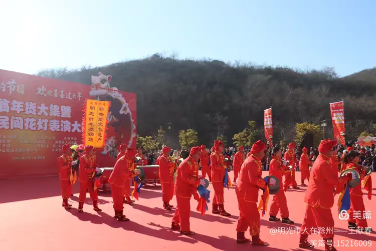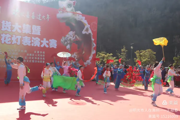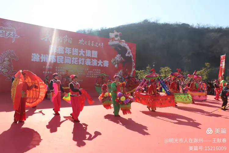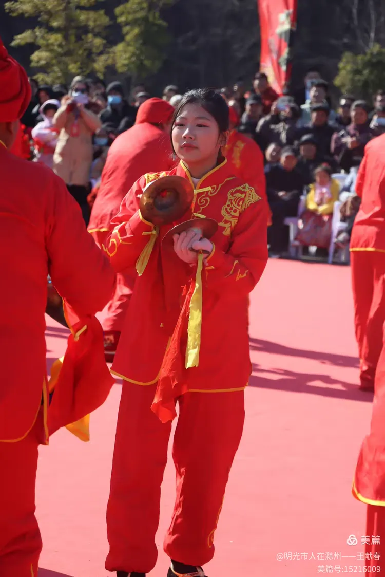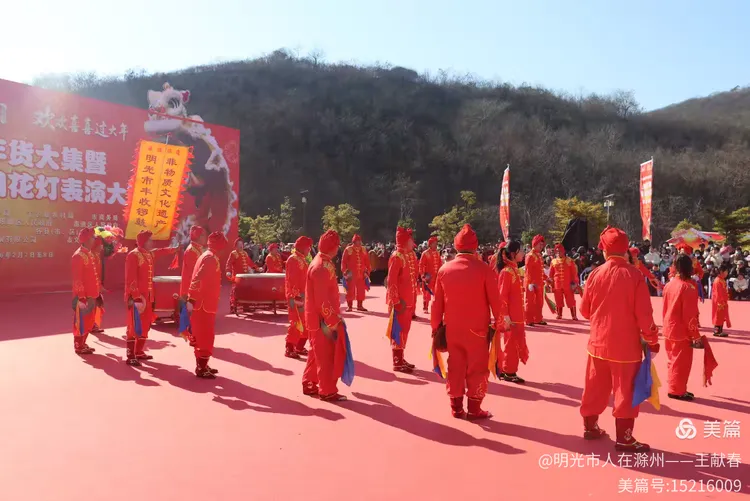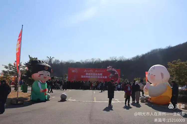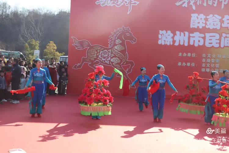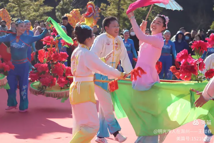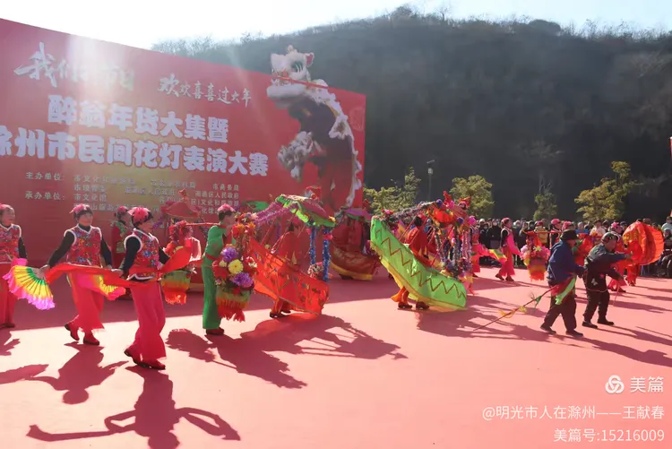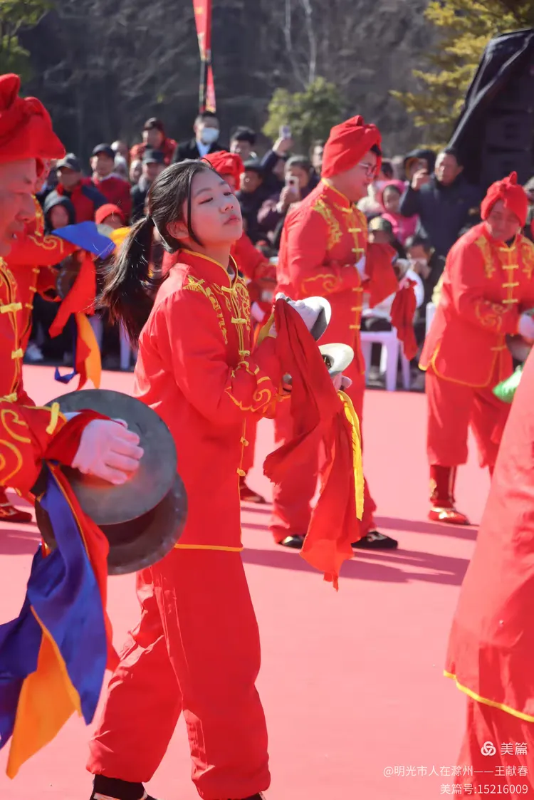 最热闹处,是那条黄红相间的长龙。十几号人擎着龙身,踏着鼓点游走,龙首高昂,龙尾轻摆,鳞片在阳光下闪闪发亮。围观的人越聚越多,有小孩骑在父亲肩头,有老人拄着拐杖笑得前仰后合。山在背后静默,龙在眼前翻腾,一静一动之间,琅琊山的下午,忽然就活了过来。