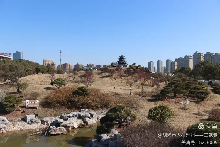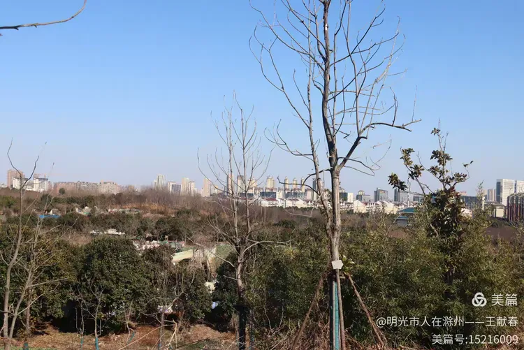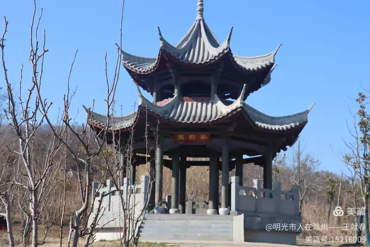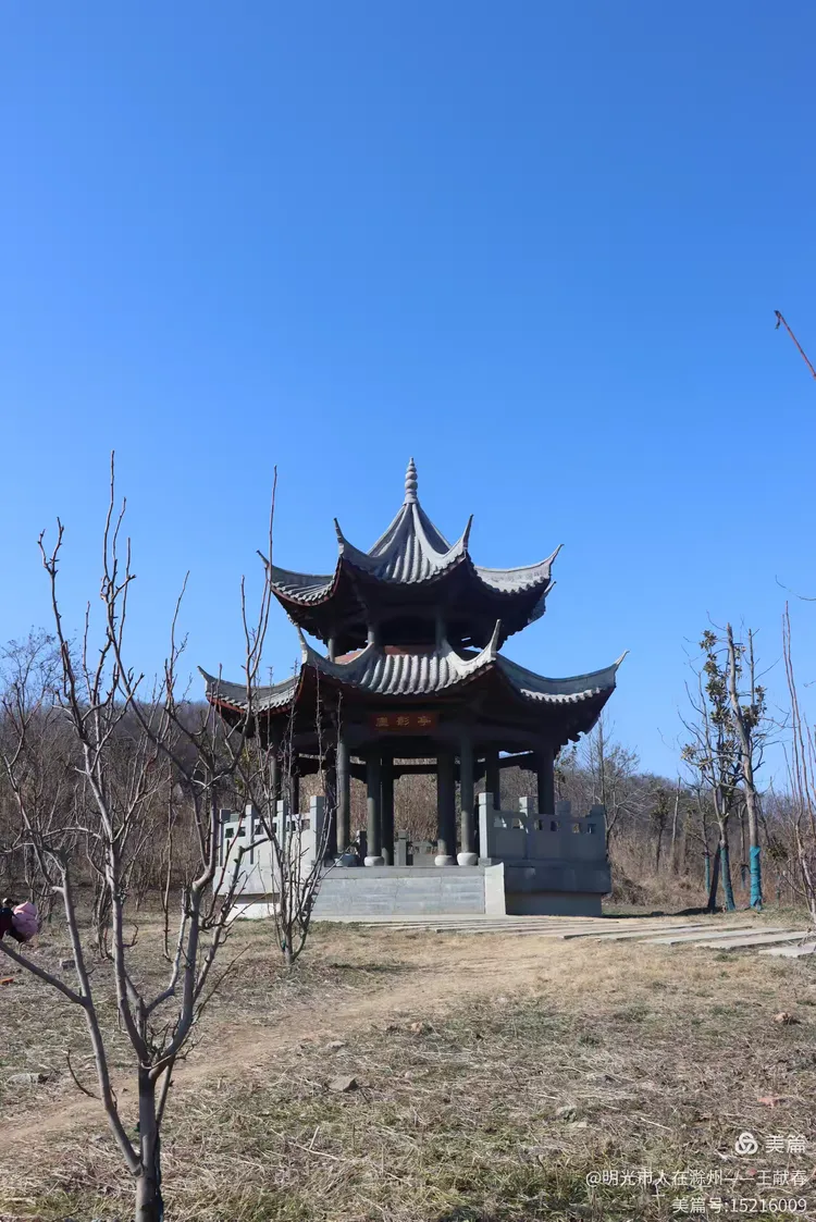 半山腰一座亭子,两层飞檐,灰瓦沉静,木柱是深褐色的,石基上还雕着模糊的云纹。我坐在亭中歇脚,看几棵光秃的树影在石阶上缓缓挪移。山风清冽,却并不刺骨,只把衣角轻轻掀一下。远处山势舒展,天光如洗,整座琅琊山,不喧哗,不邀宠,就那样自在地呼吸着。