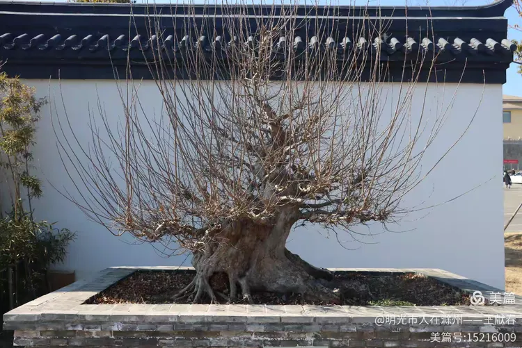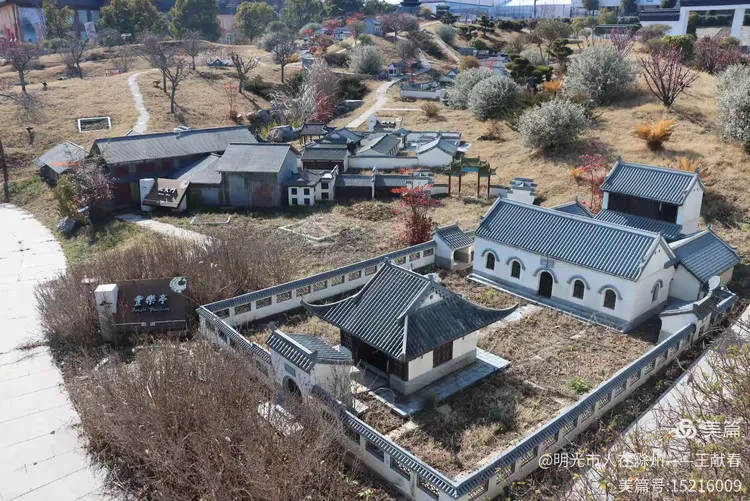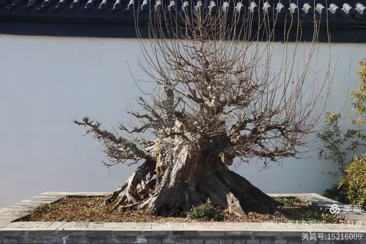 再往里走,一座中式院落静静伏在坡上:白墙黛瓦,飞檐如翼,檐下木色沉静。院墙边几株树已落尽叶子,却有几树白花正开,细瓣清瘦,在冬阳里浮着一层柔光。远处高楼的玻璃幕墙反着光,像一面不经意闯入的镜子——古与今,并不争,只是并肩站着,晒同一片太阳。