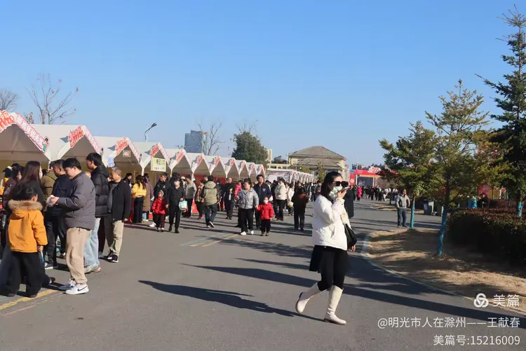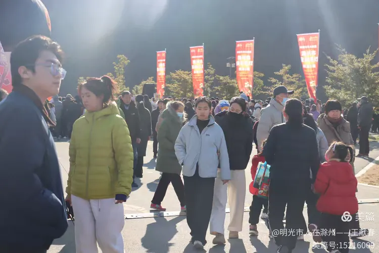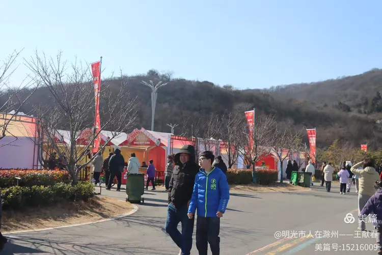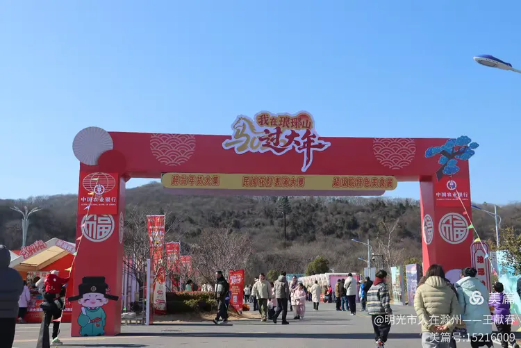 快到牌坊东侧的开阔地,忽见一座大红拱门拔地而起,上书“我在琅琊山过大年”,字字饱满,喜气扑面。底下人来人往,有拎着年货袋的老人,有举着糖葫芦笑闹的孩子,还有情侣并肩走过,影子叠在红绸上。山丘在身后静卧,阳光温厚,连风都带着一点甜香——原来年味不必在灶台边,它就在这山脚下的步履之间,在抬头低头的烟火气里。