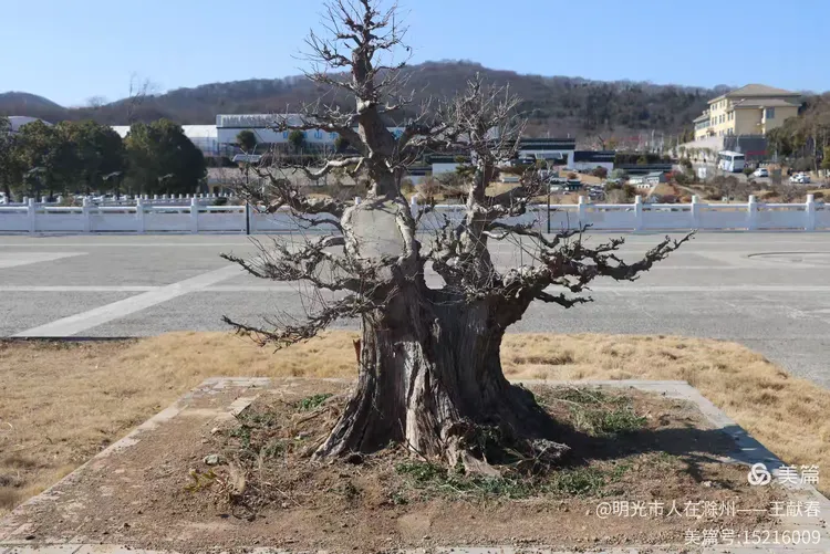 路旁一棵老树,树干虬曲,枝杈如笔走龙蛇,全然落尽了叶子,却更显筋骨。它被安在一方青石台基上,台边草色枯黄,却干干净净。我仰头看了会儿,风从枝桠间穿过,空荡荡的,却好像能听见它年轻时的喧哗。再往前,一条宽路伸展出去,远处楼影与山影彼此认得,默然相望。