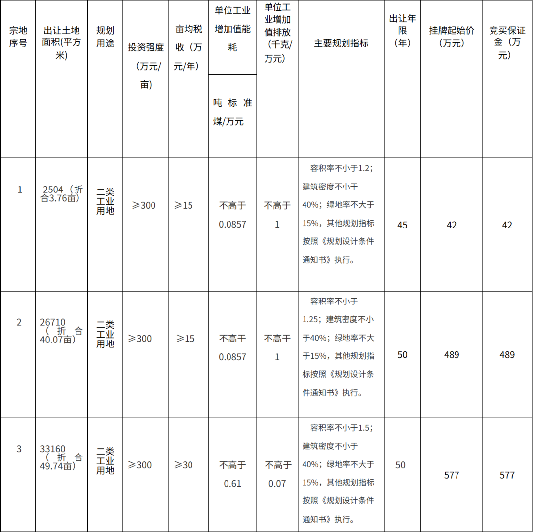 滁州市国有建设用地使用权挂牌出让公告滁土公告字〔2026〕3号根据《中华人民共和国土地管理法》、《中华人民共和国城市房地产管理法》和《招标拍卖挂牌出让国有建设用地使用权规定》等法律、法规规定,经滁州市人民政府批准,滁州市自然资源和规划局对以下3宗国有建设用地使用权进行公开挂牌出让,出让宗地范围内原土地使用权同时收回。现将有关事项公告如下:一、挂牌出让宗地位置、规划指标、起始价、保证金及出让年限第1号宗地位于乌衣镇二郎湖路与五尖山路交叉口东南侧,宗地编号:341103011015GB00412。第2号宗地位于乌衣镇兴隆路与红山路交叉口西北侧,宗地编号:341103100004GB00705。第3号宗地位于长江路与常州路交叉口西北侧,宗地编号:341103107002GB00973。具体情况见下表(宗地详细规划指标及要求详见出让文件) 以上3宗地为工业项目“标准地”出让,出让后,在签订土地成交确认书后30日内,由滁州南谯经济开发区管理委员会、滁州经济技术开发区管理委员会与竞得人签订《工业项目用地投入产出监管合同》,并进行监管,其他相关职能部门负责对各自职责做好监管。中华人民共和国境内外的自然人、法人和其它组织,除法律、法规另有限制者外,均可申请竞买。可以单独申请,也可以联合申请。申请人报名时须提供下列资料:1、竞买申请书;2、企业营业执照副本原件及复印件;3、法定代表人身份证原件及复印件,如委托代理的,还应提交授权委托书及委托代理人身份证原件及复印件;4、申请人竞买保证金银行交纳凭证。 挂牌时间:2026年3月2日上午9时30分开始,至2026年3月12日上午10时整止。挂牌地点:滁州市公共资源交易中心(地址为龙蟠大道109号)。本次挂牌方式为增价报价。挂牌地块以整宗净地出让,挂牌成交价即为土地使用权出让金。土地使用权出让契税等由竞得人另行缴纳。竞买申请时间:申请人应于2026年2月10日至2026年3月10日,到滁州市土地储备中心领取本次挂牌地块的文件资料,提出竞买申请,办理竞买登记手续。报名地点:滁州市土地储备中心(地址为龙蟠大道109号,市自然资源和规划局办公楼726室)移交的净地条件:宗地范围内房屋及构筑物拆至室内地坪,宗地内地形高程、所有管线、杆线(电线、电缆、光缆等)、沟渠等以及宗地周边供水、排水、供电、道路等基础设施均以成交时现状为准。移交宗地后如竞得人需要平整场地,迁移(或改线)管线、杆线(电线、电缆、光缆等)、沟渠等,由竞得人自行处理,所有费用均由竞得人承担。十、本次出让由滁州市自然资源和规划局委托滁州市土地储备中心具体承办,并对本《公告》有解释权。网 址 :http://zrzyghj.chuzhou.gov.cn |