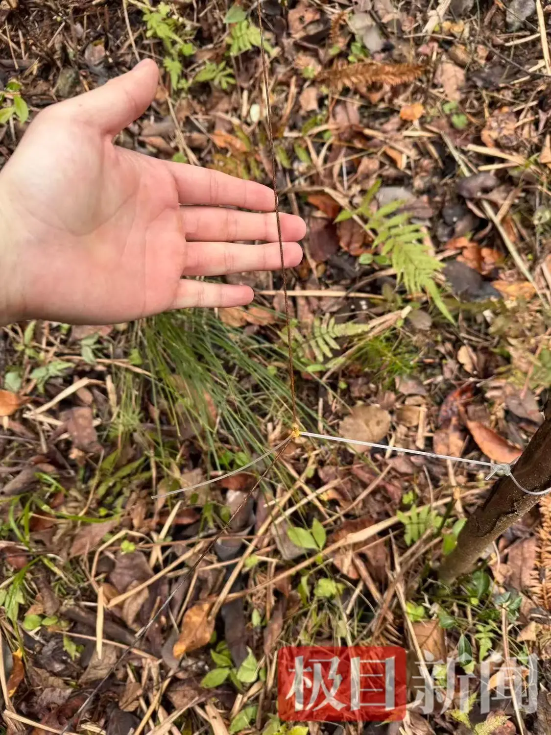 极目新闻记者在王明遇难处实地走访发现,该非法捕猎装置含12伏电瓶和逆变变压器,可以输出高压电,并通过多根细铁丝形成“电网”。部分铁丝被牵到山路上,很难被人察觉,当天王明下山时天色已暗,触碰带电铁丝后殒命于此。